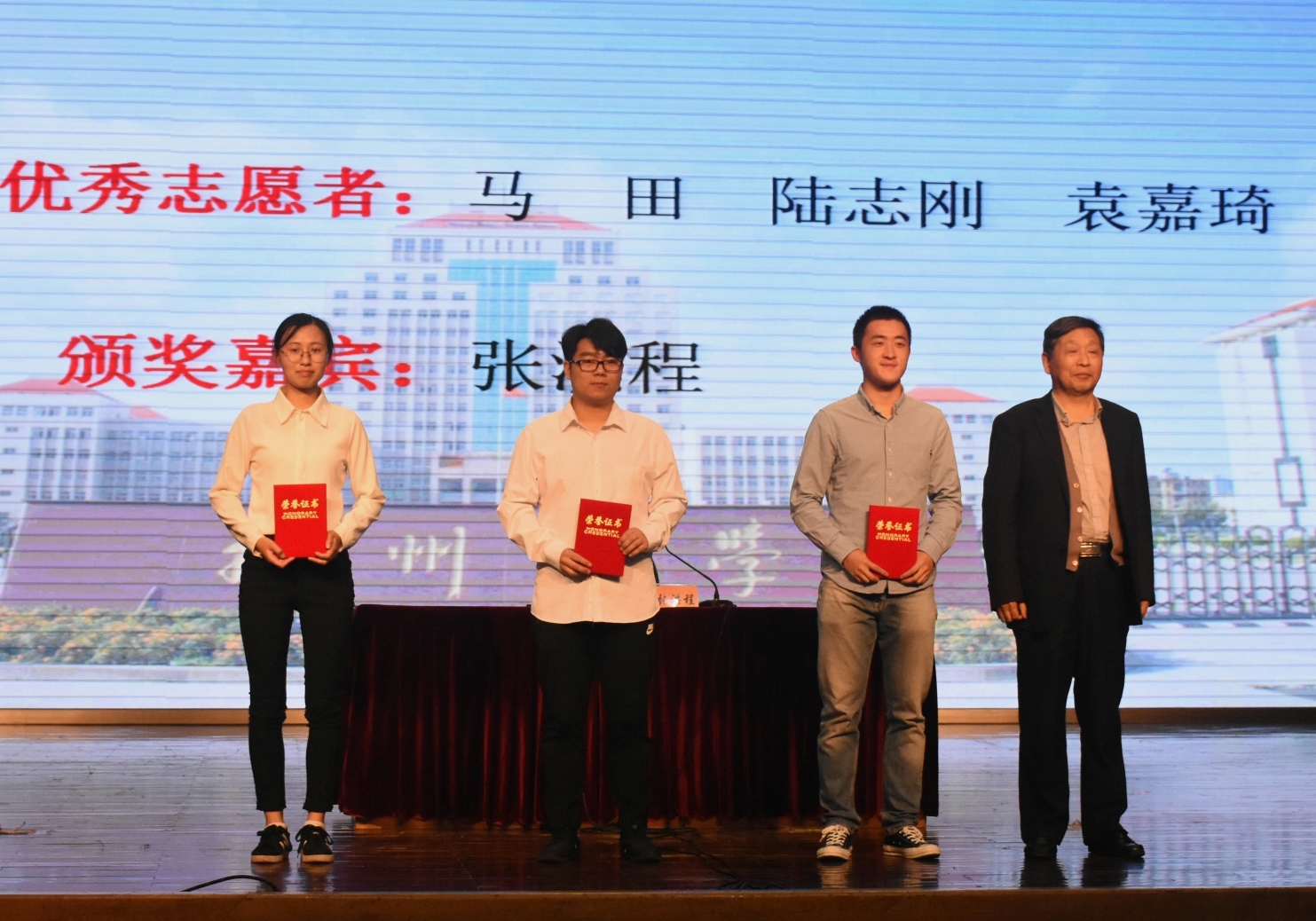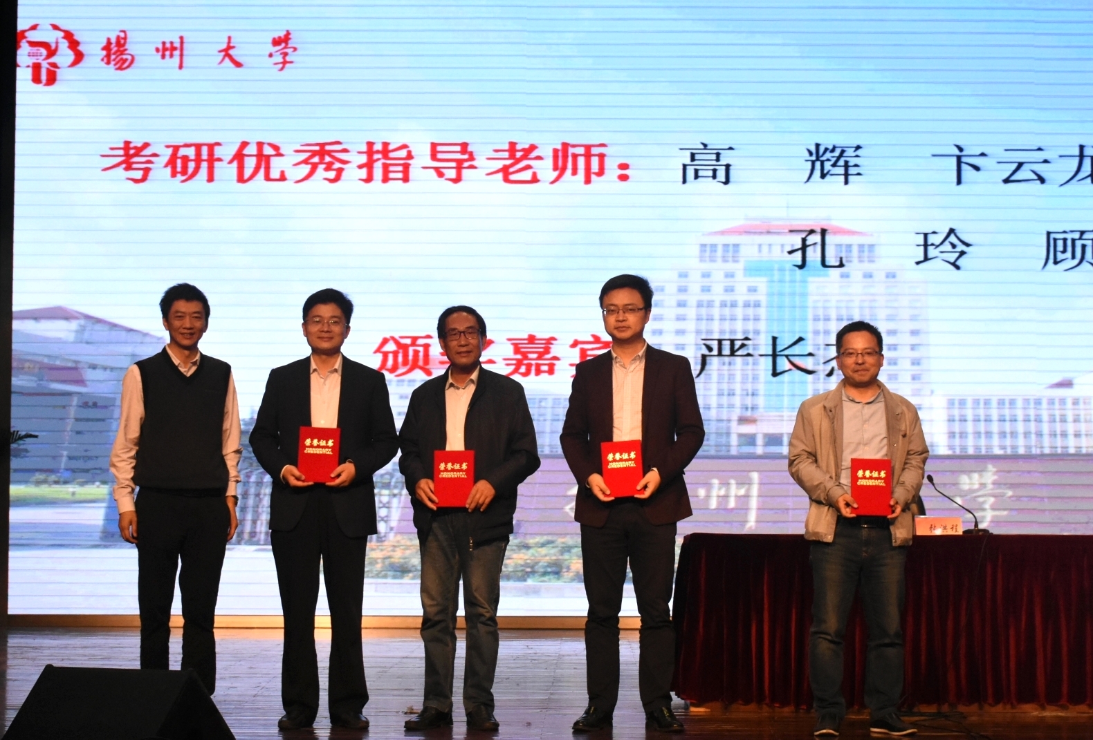 会议第二阶段是2015级学生考研动员。首先,由严长杰院长和张洪程院士分别向2014级班主任以及考研服务工作优秀志愿者颁发了荣誉证书,肯定了他们在去年考研指导、服务中的工作表现,鼓励全体师生再接再厉,再创2019年考研工作新辉煌。
