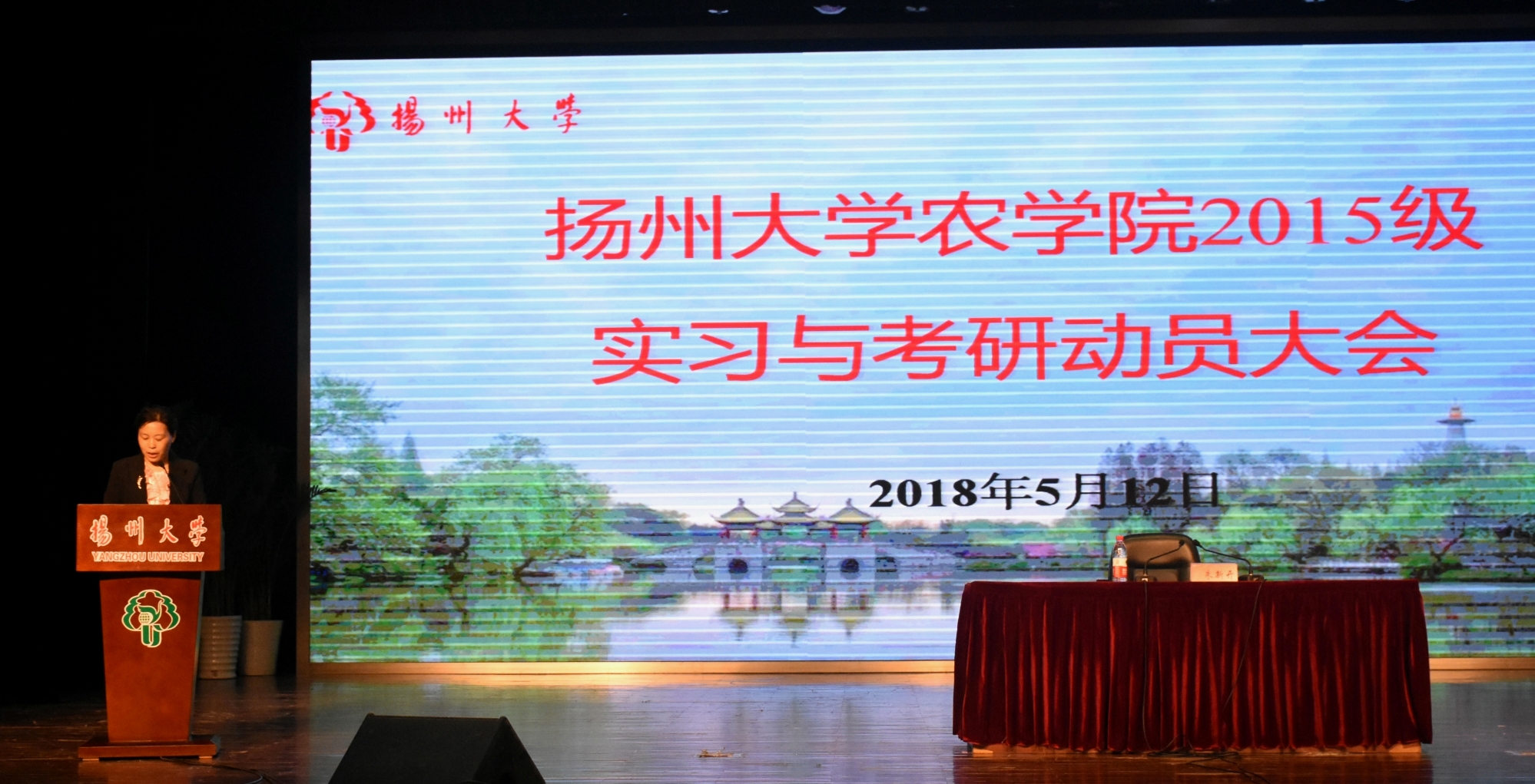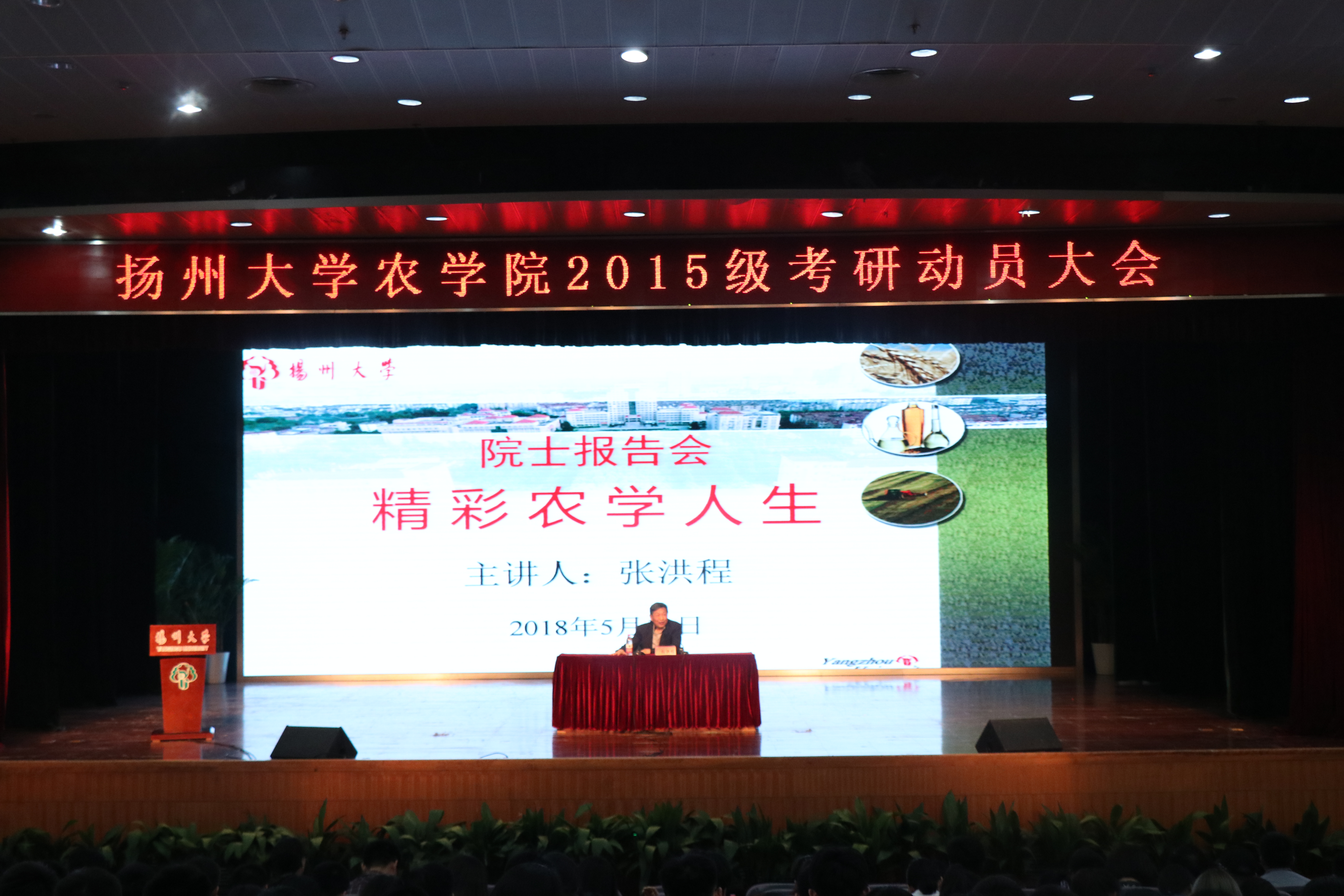 5月12日晚,我院在小剧场召开2015级本科生实习与考研动员大会。中国工程院院士、作物栽培学与耕作学学科带头人张洪程教授、严长杰院长、沙爱红副书记、农学系系主任朱新开教授等出席了会议。院团委(学工办)全体老师、2014、2015级部分班主任以及全体2015级、2017级本科生共同参加了本次大会。