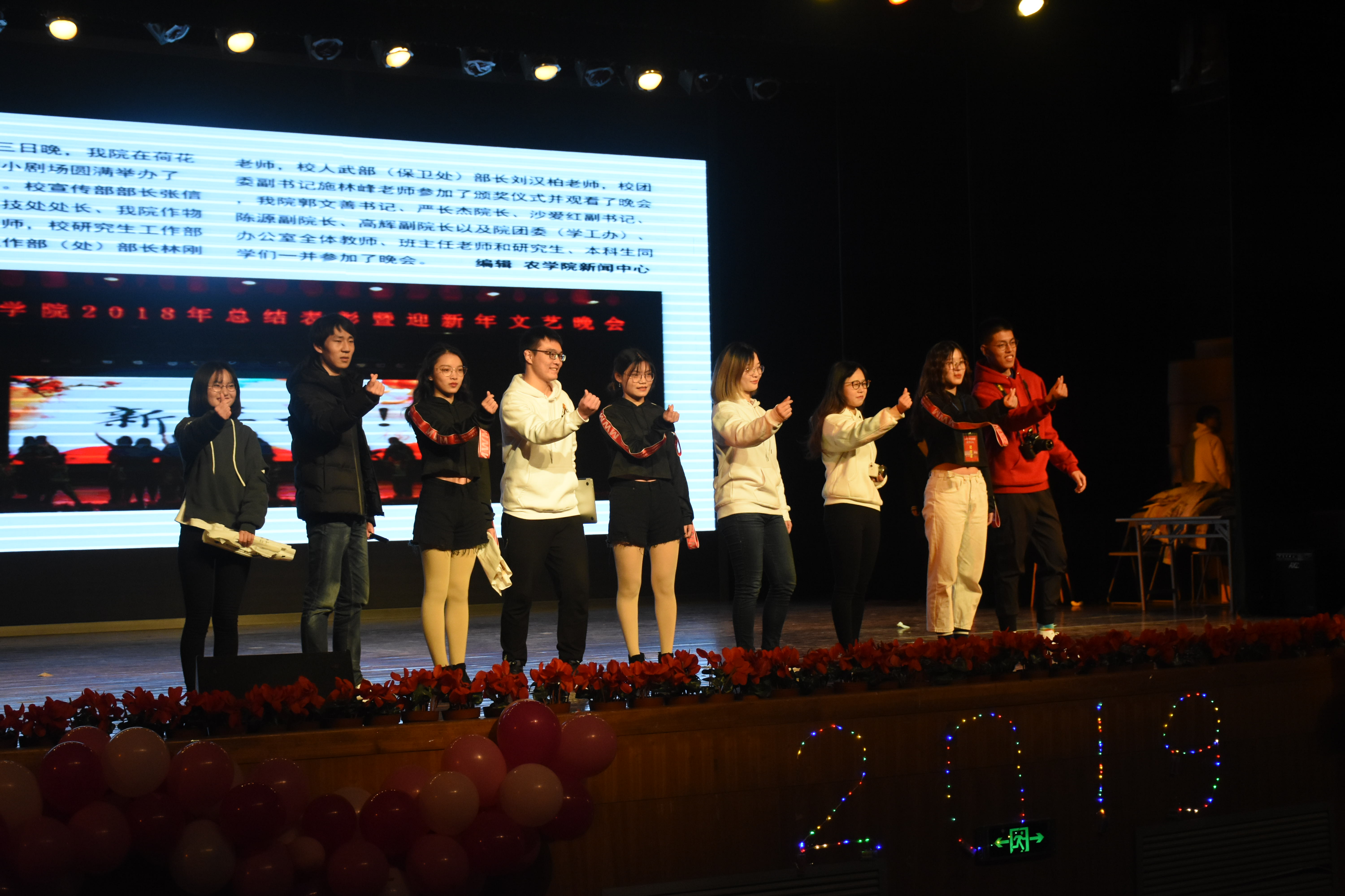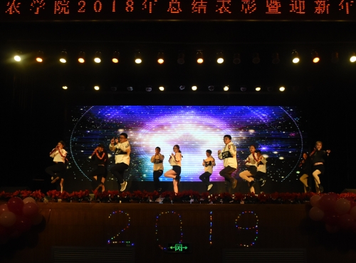 在青春动感的18级新生班级《耀舞扬威》舞蹈中迎新年文艺节目正式拉开帷幕。唯美动听的歌曲、令人捧腹不已的相声小品、高潮迭起的互动环节,以及学生干部们的风采展示等等,无一不展现出了我院学子青春朝气,全体师生相亲相爱,融洽相处的良好氛围。最精彩是最后由学院农二代小朋友和大学生们共同表演的歌舞表演,将现场氛围推向了高潮。