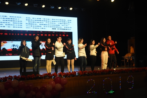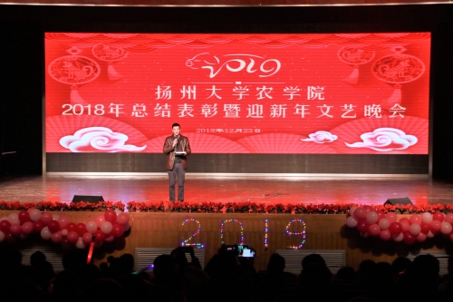 12月23日晚,我院2018年总结表彰会暨迎新年文艺晚会在荷花池校区大学生活动中心三楼小剧场隆重举行。校党委副书记叶柏森老师,校党委常委、宣传部部长张信华老师,校学生工作部部长、学生工作处处长林刚老师,校研究生工作部部长赵晓兰老师,校保卫处处长、人武部部长刘汉柏老师,校团委书记施林峰老师,扬州春泉科技有限公司花荣浒总经理参加了颁奖仪式并观看了晚会,我院郭文善书记、严长杰院长、沙爱红副书记、高辉副院长、杨泽峰副院长、吴宏亚副院长以及院团委(学工办)、办公室全体教师、班主任老师和研究生、本科生同学们一并参加了晚会。