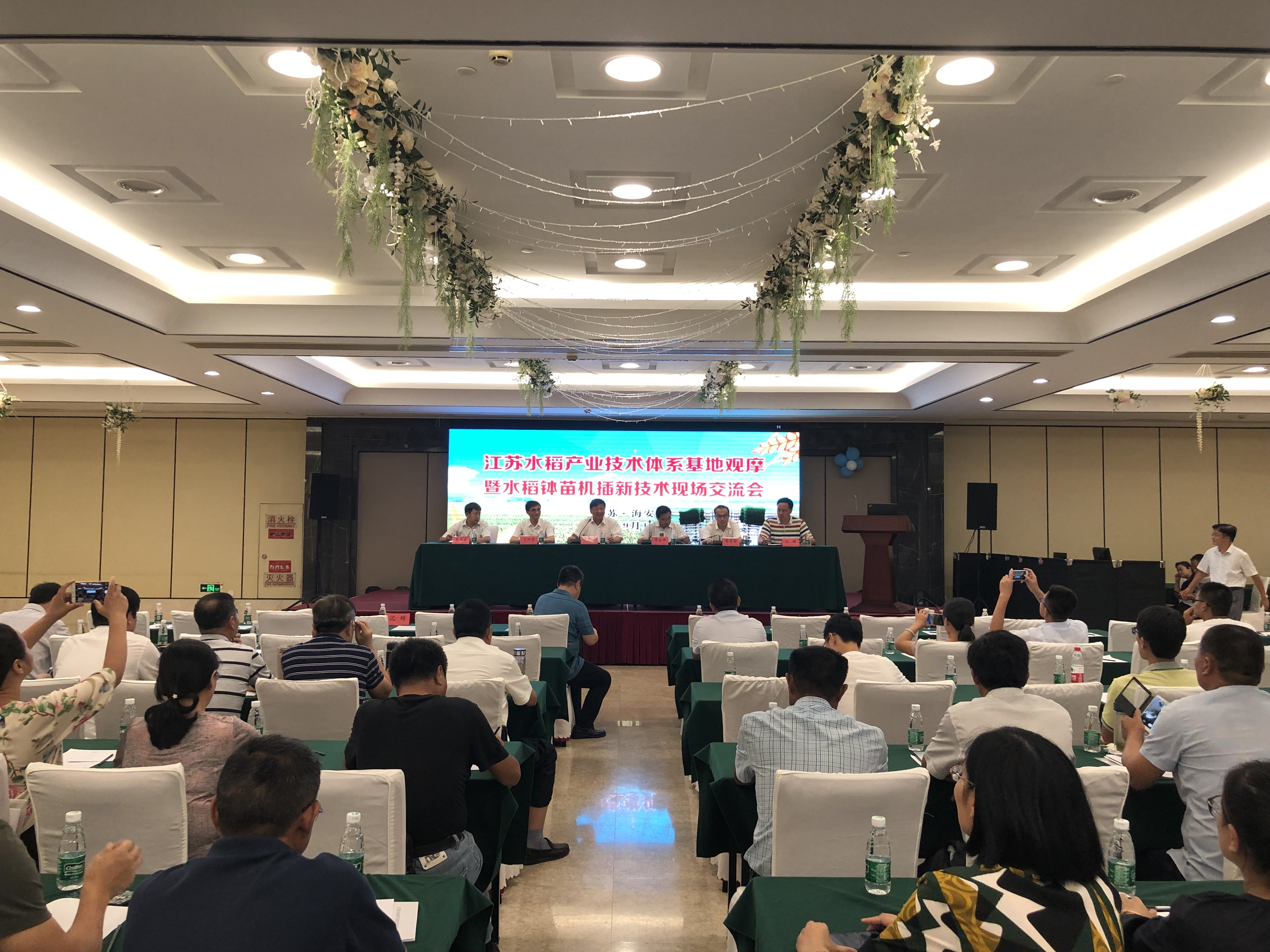 在海安市进行的交流会上,海安市副市长丁兴育作了致辞。广陵、姜堰、海安、江苏农垦黄海分公司、宿迁分公司、常州亚美柯机械设备有限公司进行了基地建设经验与水稻钵苗机插新技术示范推广应用情况交流。江苏省农业技术推广总站站长管永祥、江苏省农业农村厅科教处副处长嵇召勋作了讲话。张洪程院士作了会议总结,充分肯定了各基地所取得的可喜进展,基地现场高标高质,试验落实量质并举,尤其突出了农艺农机融合、绿色高质高效、模式机制创新等主题,产业化品牌化开发特色鲜明,示范带动作用显著。