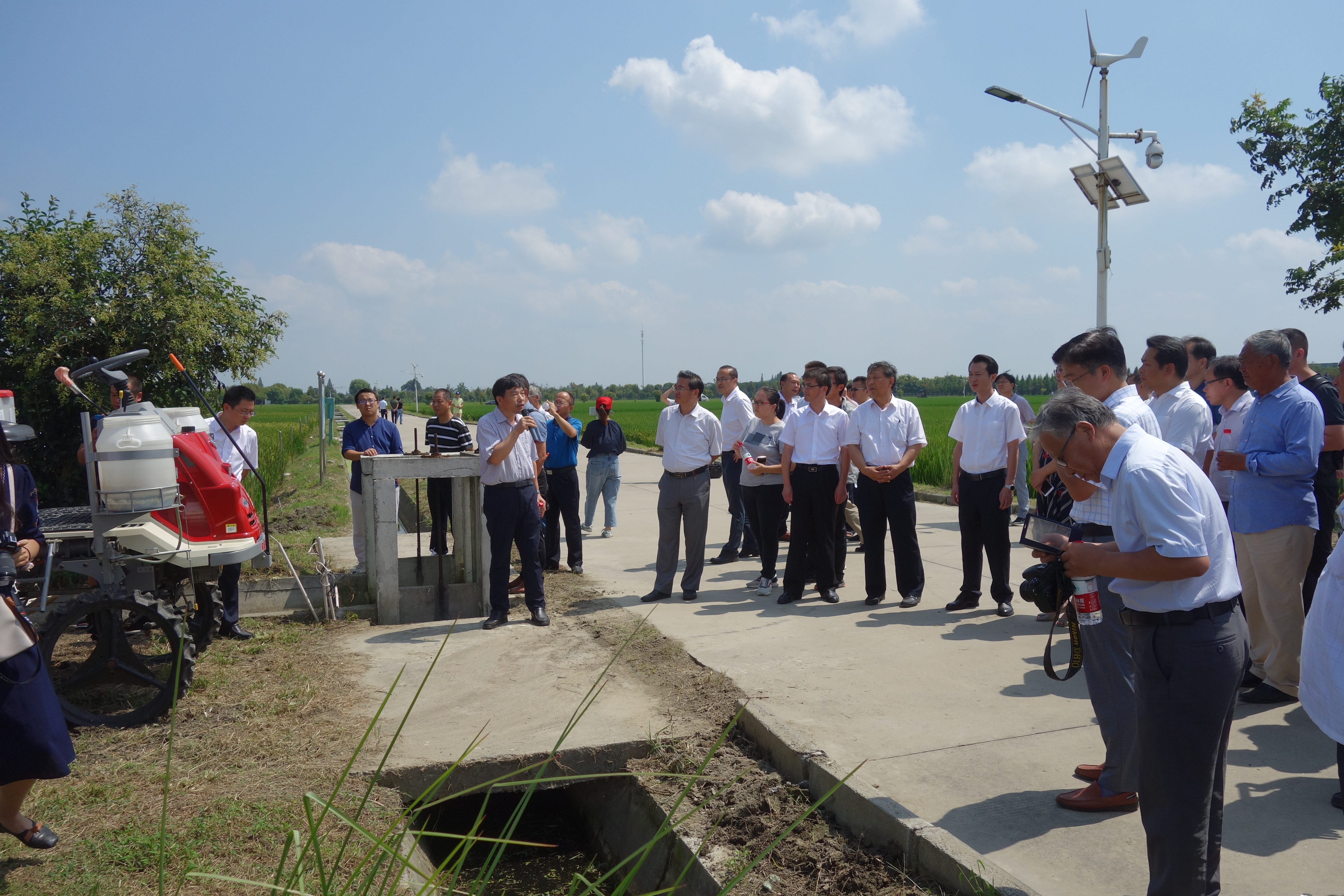 与会人员共同观摩了江苏水稻产业技术体系集成创新中心广陵(沙头)基地、江苏水稻产业技术体系姜堰(河横)基地、江苏水稻产业技术体系海安(雅周)基地高质量现场。
