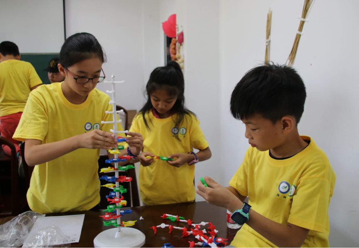 实验室主任、扬州大学副校长刘巧泉教授出席开幕式并致辞。刘巧泉教授对此次参加活动的同学们表达了热烈的欢迎,并就作物和DNA的概念以及生活中的某些有关现象做出简略阐述,最后他表示希望同学们今天能够玩的开心,学的开心!实验室副主任龚志云教授和薛超博士分别主持标本室及实验室的参观活动,他们通过为同学们讲解不同动物标本、参观作物组培室、显微镜室等重点实验室分实验室等方法来激发同学们对于知识的渴求和对科研的兴趣。陈忱教授主持DNA模型搭建活动,为同学们讲解DNA的奥秘并让他们亲自动手组装DNA模型。同学们在此过程中均投入了饱满的热情。熊诗语、曹张钰涵和刘芳竹三位小朋友以突出的表现和乐于助人的行动获得了特等奖,而其他31同学表现同样优秀亦都获得了精美礼品作为奖励。王后苗博士主持农作物及其产品观察与品鉴环节,由四位硕士研究生陈志爱、周正萍、田涣玲、张鹏鹏分别负责讲解水稻、小麦&大麦、玉米和油料作物及其产品,并结合各种作物的种子及产品实物向各位同学介绍了各种作物的基础知识和应用;且通过品尝不同种类的农产品加深对作物、对农业的认识。作物遗传育种系副主任陈赛华教授为同学们详细介绍现代农业科普知识,她提出了很多现代科技解决农业问题的例子和相关原理,例如苏云菌芽孢杆菌在棉花转基因中的应用等,以此描绘了一幅现代化农业的蓝图。实验室副主任龚志云教授致活动总结陈词,并询问同学们此次活动的收获,获得了热烈的回应,如缪苇杭同学讲:“我知道了农业生产的很多方法”;职慧则说:“知道了农业机械化生产的新方式方法”。根据各位参加同学的综合表现,评选并颁发了优秀学员证书。此次活动在同学们和家长们的一致好评中圆满结束。