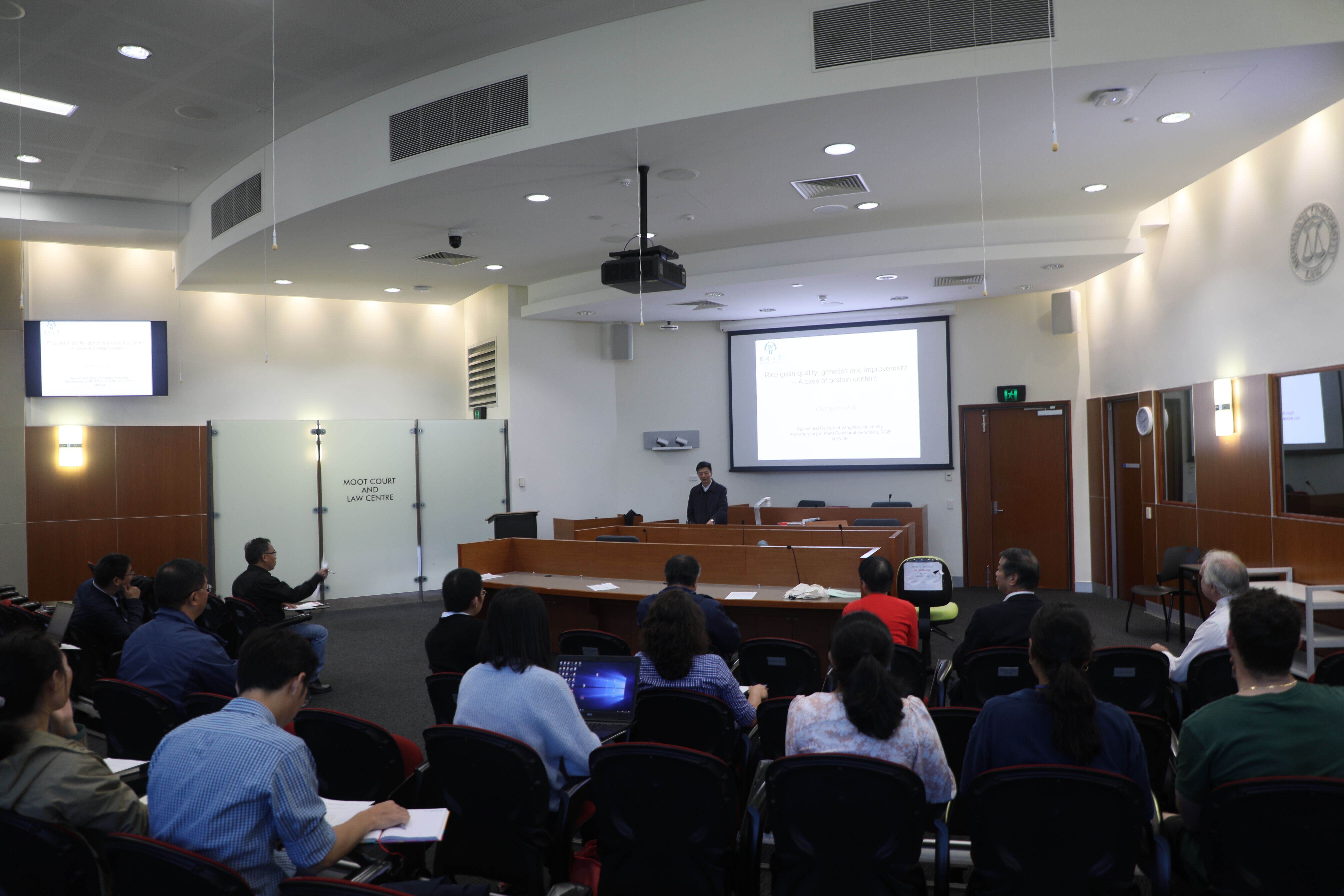 第二站访问了西澳大学,农业研究所所长Kadambot Siddique教授、Yinglong Chen教授、庞佳音教授、Joanne Barton教授等会见了代表团一行。Kadambot Siddique教授代表西澳大学对扬州大学代表团的来访表示热烈欢迎,并向代表团介绍了西澳大学农业研究所的基本概况、组织架构及近年来在作物学领域取得的突出进展。代表团团长严长杰教授向澳方介绍了我方的主要成员,并介绍了我校在作物科学领域取得的显著进展。双方就作物学科学研究和人才培养方面潜在的合作空间进行了沟通,并达成了初步意向。