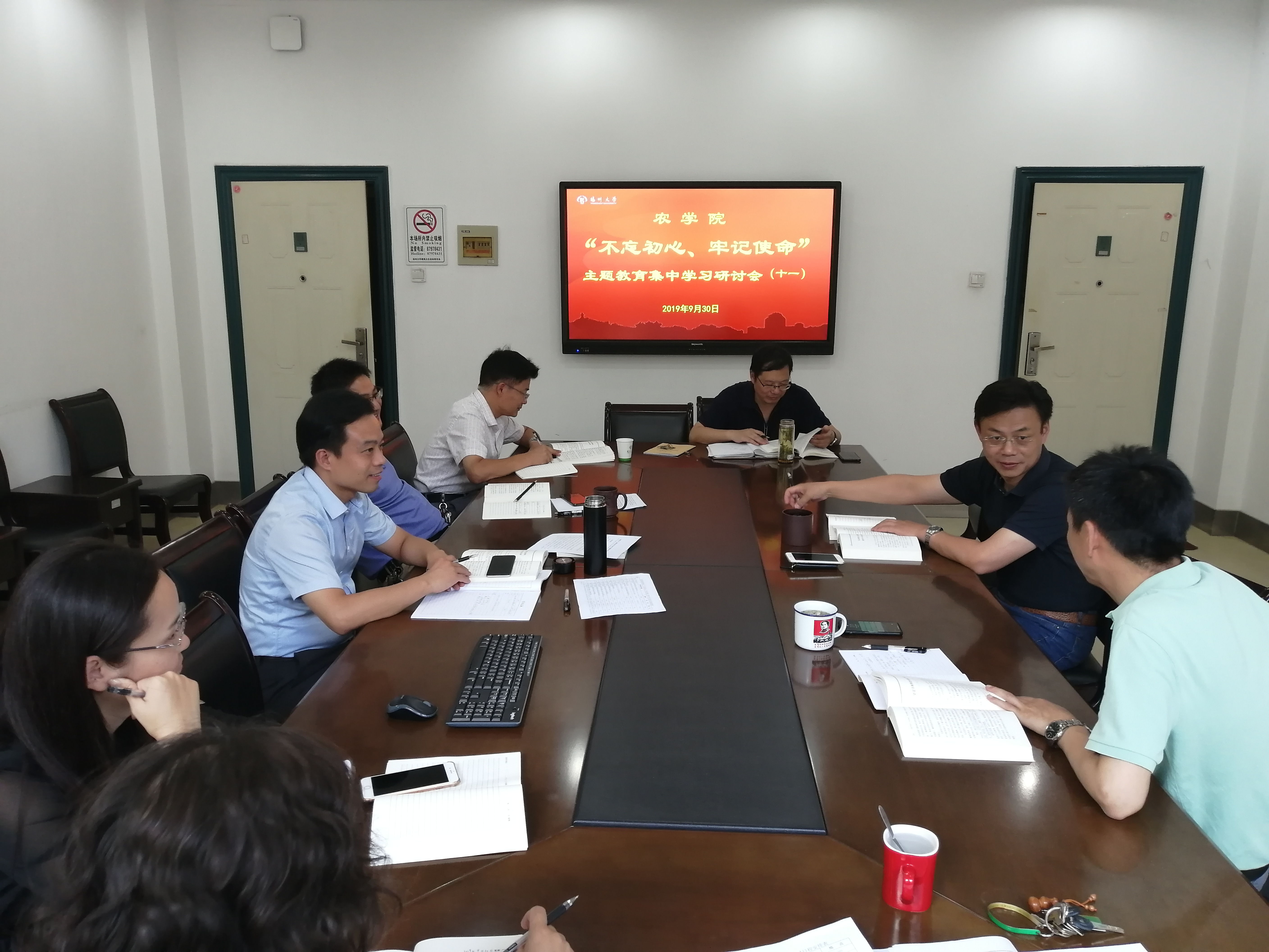 9月20-30日,农学院领导班子积极开展“不忘初心、牢记使命”集中学习研讨,结合担当作为、理想信念、党的政治建设、政治纪律和政治规矩、全面从严治党、宗旨意识、党性修养、廉洁自律等8个专题,集中学习并研讨了习近平关于“不忘初心、牢记使命”的重要论述。