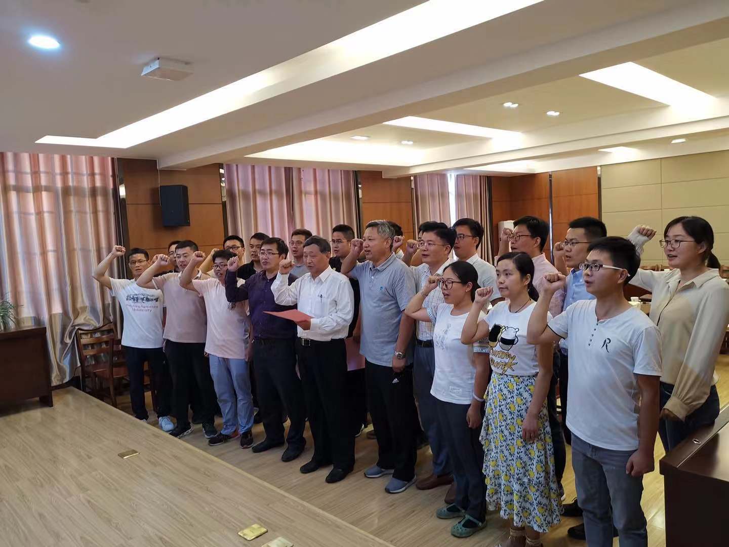9月28日下午,在祖国70华诞即将到来之际,结合“不忘初心、牢记使命”主题教育,张洪程院士组织团队全体成员面向国旗庄严宣誓:不忘初心,牢记使命,发明创新,奋发图强,为建设一流研究院而不懈奋斗!