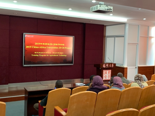 10月28日至11月1日,2019中非高校20+20合作计划-农业技术培训班在我院举办。今年共有26位来自苏丹各高校的学者来我院参加培训。培训班上,副院长陆大雷教授致辞欢迎苏丹友人的来访,并介绍了我院的基本情况。随后,我院9位教师分别在农作物现代化生产和分子育种技术等领域开展了培训课程。培训期间,苏丹学者就个人感兴趣的问题与老师们进行了交流探讨,气氛热烈。