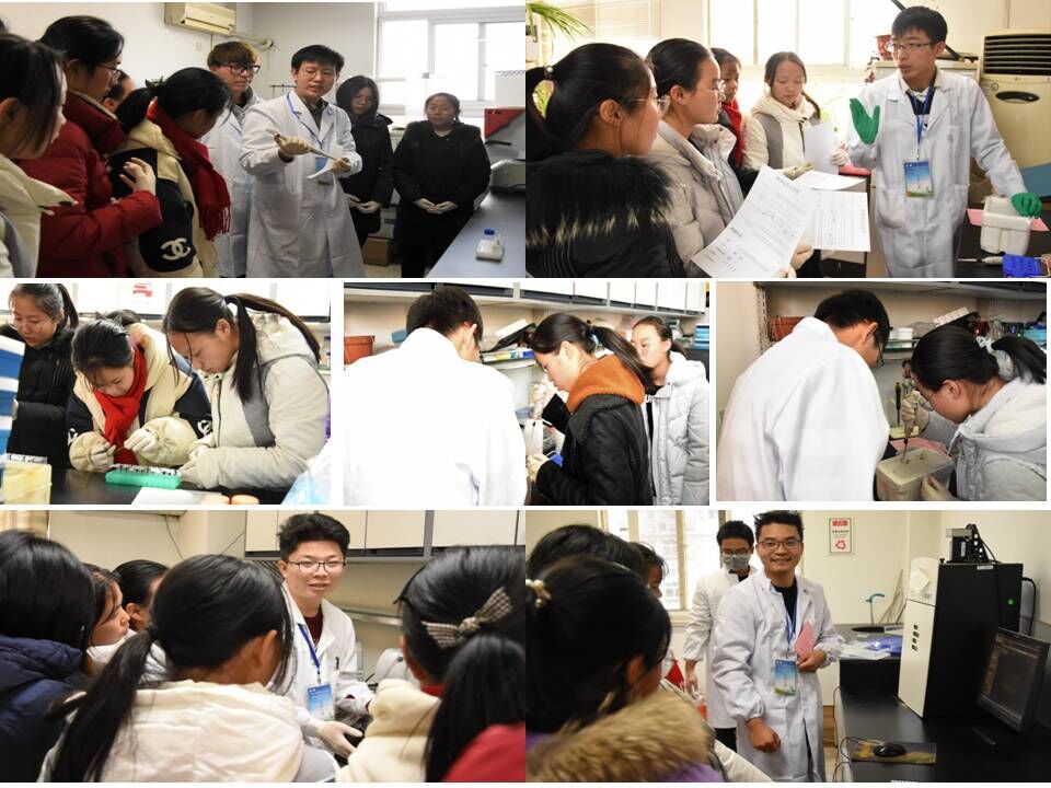 实验室副主任龚志云教授对此次参加活动的同学们表达了热烈的欢迎,并简要介绍了实验室的基本情况及此次活动内容,强调了安全问题,并将参加此次活动的同学们分成六组,以确保有序、安全、有效的进入实验室。在实验室参观的过程中,正高级王志琴实验师、张耗副教授、王后苗博士带领同学们参观了各种各样的实验室器材,并向同学们认真讲解仪器设备的特性、使用要求及实验安全注意事项。接着进行的是实验操作观摩与实践:DNA提取、PCR反应、PCR扩增、DNA及PCR产物检测,分别由我室范晓磊博士、张超博士、薛超博士、缪军博士4位青年教师负责给大家讲解、示范并指导实验操作。同学们亲自参与到实验中,加深了对实验原理的理解并锻炼了自己的动手能力。最后,大家都带着满满的收获回到教室。此次活动在同学们的一致好评中圆满结束。