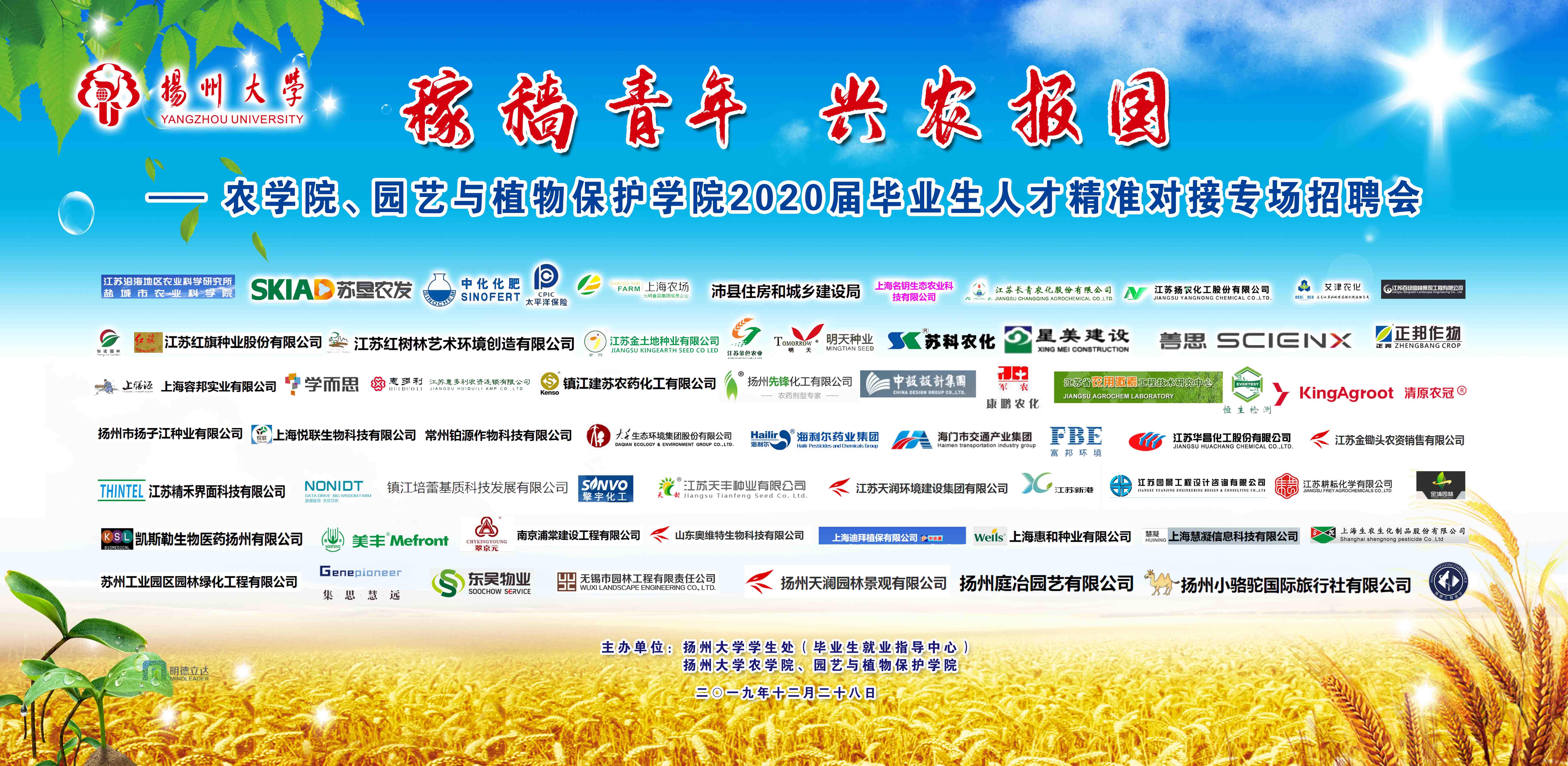 12月28日,扬州大学农学院、园艺与植物保护学院2020届毕业生人才精准对接专场招聘会在大学生活动中心一楼就业大厅成功举办。