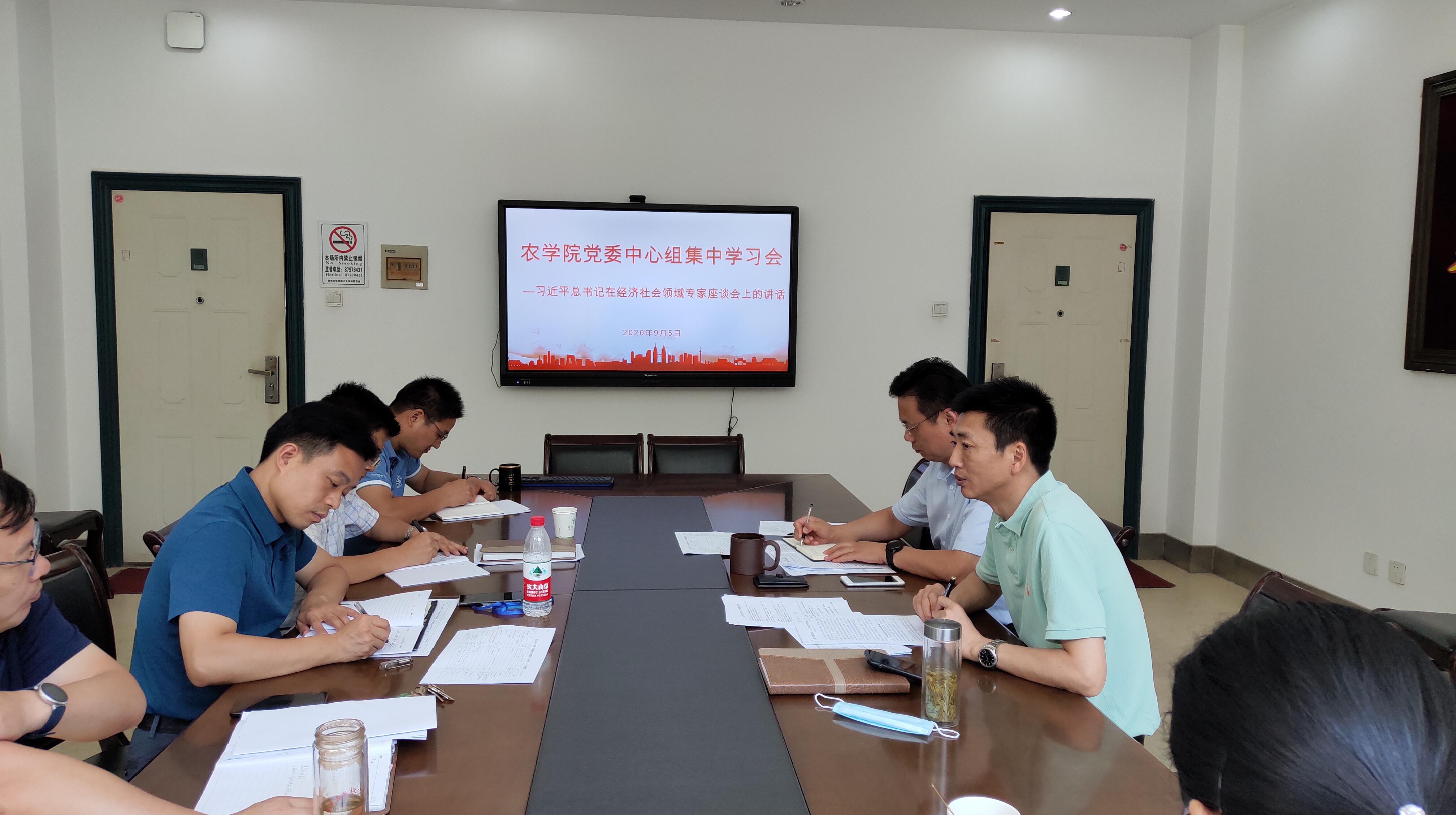 9月5日上午,我院党委理论学习中心组举行集中学习会,认真学习习近平总书记在经济社会领域专家座谈会上的重要讲话精神和教育部印发的《高等学校课程思政建设指导纲要》两个重要文件。