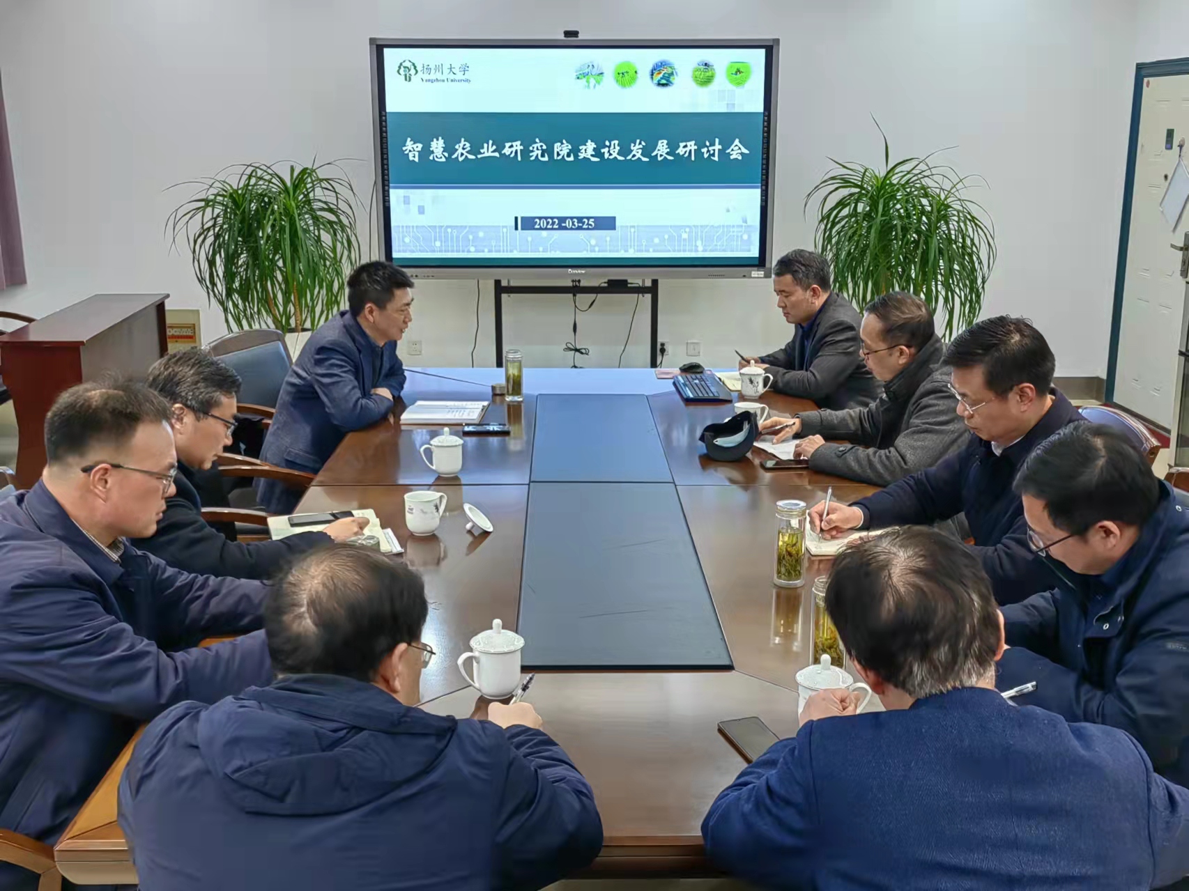 3月26日下午,智慧农业研究院在文汇路校区农牧楼N112召开建设发展研讨会。农学院党委王军书记、严长杰院长(兼任智慧农业研究院院长)、园艺与植物保护学院党委书记兼副院长(主持工作)李卫星、信息工程学院李斌院长、机械工程学院龚俊杰院长、农学院陈源副院长、水稻产业工程技术研究院高辉常务副院长等出席研讨会,严长杰院长主持会议。