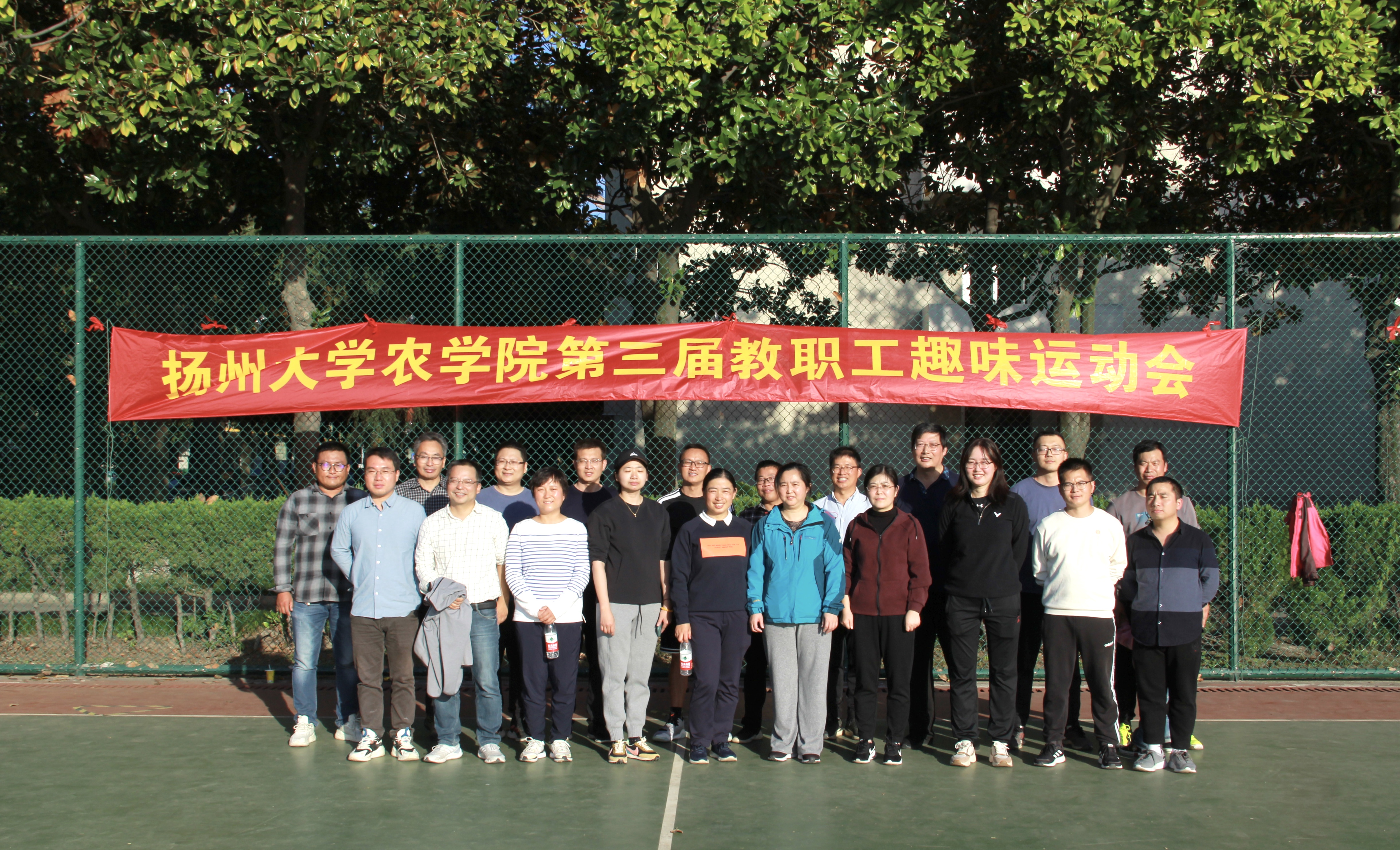 10月23日下午,农学院工会在文汇路校区篮球场举办第三届教职工趣味运动会。院党委书记周保垒致开幕词,院长杨泽峰宣布运动会开幕。校教务处处长严长杰,苏中发展研究院院长陆建飞,现代农业科教示范园区建设与管理办公室主任陈源,生物科学与技术学院党委书记陆江峰,农学院副院长陆大雷,水稻产业工程技术研究院常务副院长高辉,农学院副院长魏海燕出席活动。院工会主席刘世平主持开幕式。