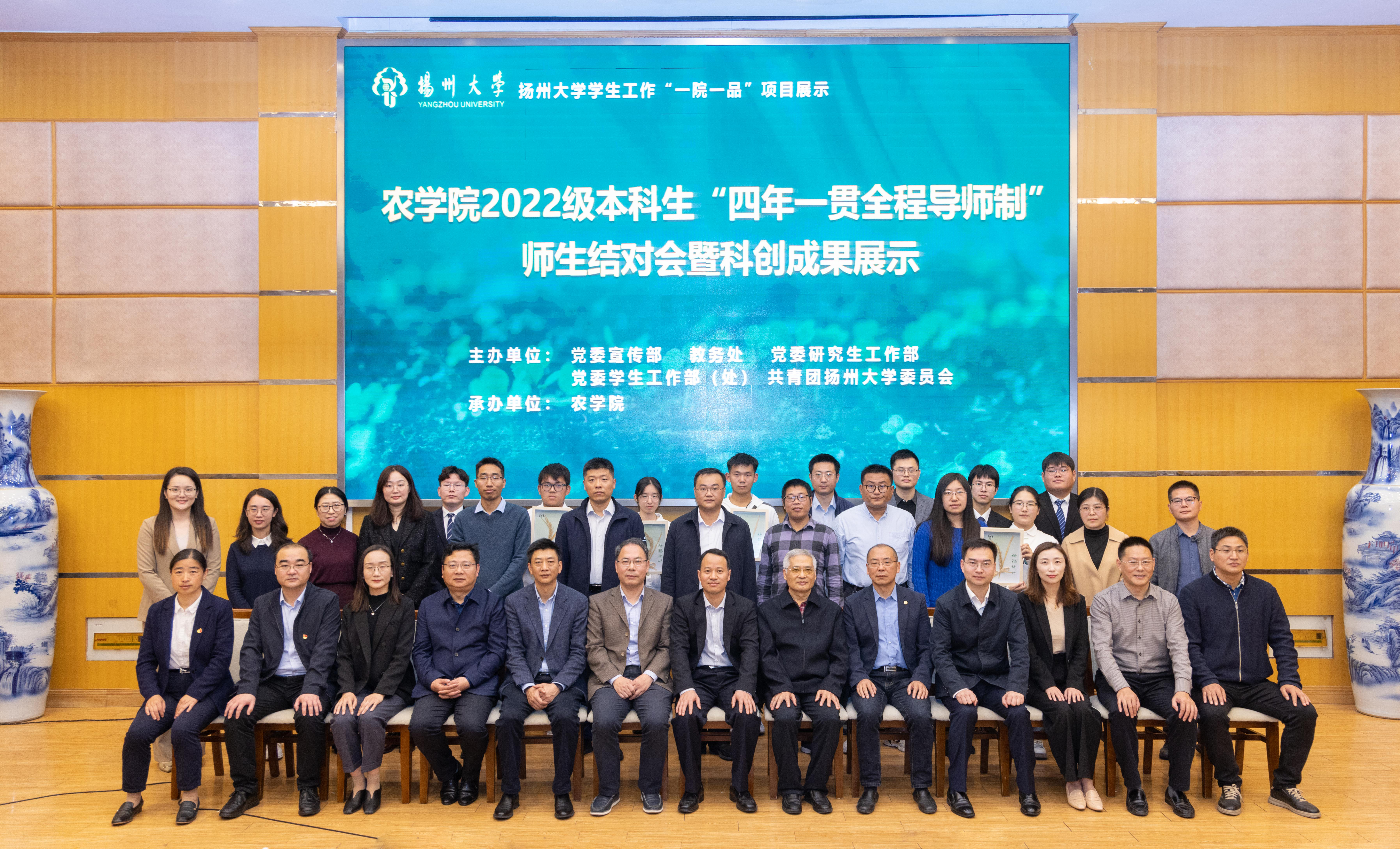 在结对仪式上,院长杨泽峰介绍了2022级本科生四年一贯全程导师制情况。副院长魏海燕宣读导师制聘任决定。与会领导分别为结对导师颁发聘书,向学生代表授予实验服。杨建昌、徐辰武、马鸿翔、李春燕老师与结对学生进行了签约、传“稻”授“叶”仪式。导师代表周勇和学生代表毛艺儒分别进行了发言。