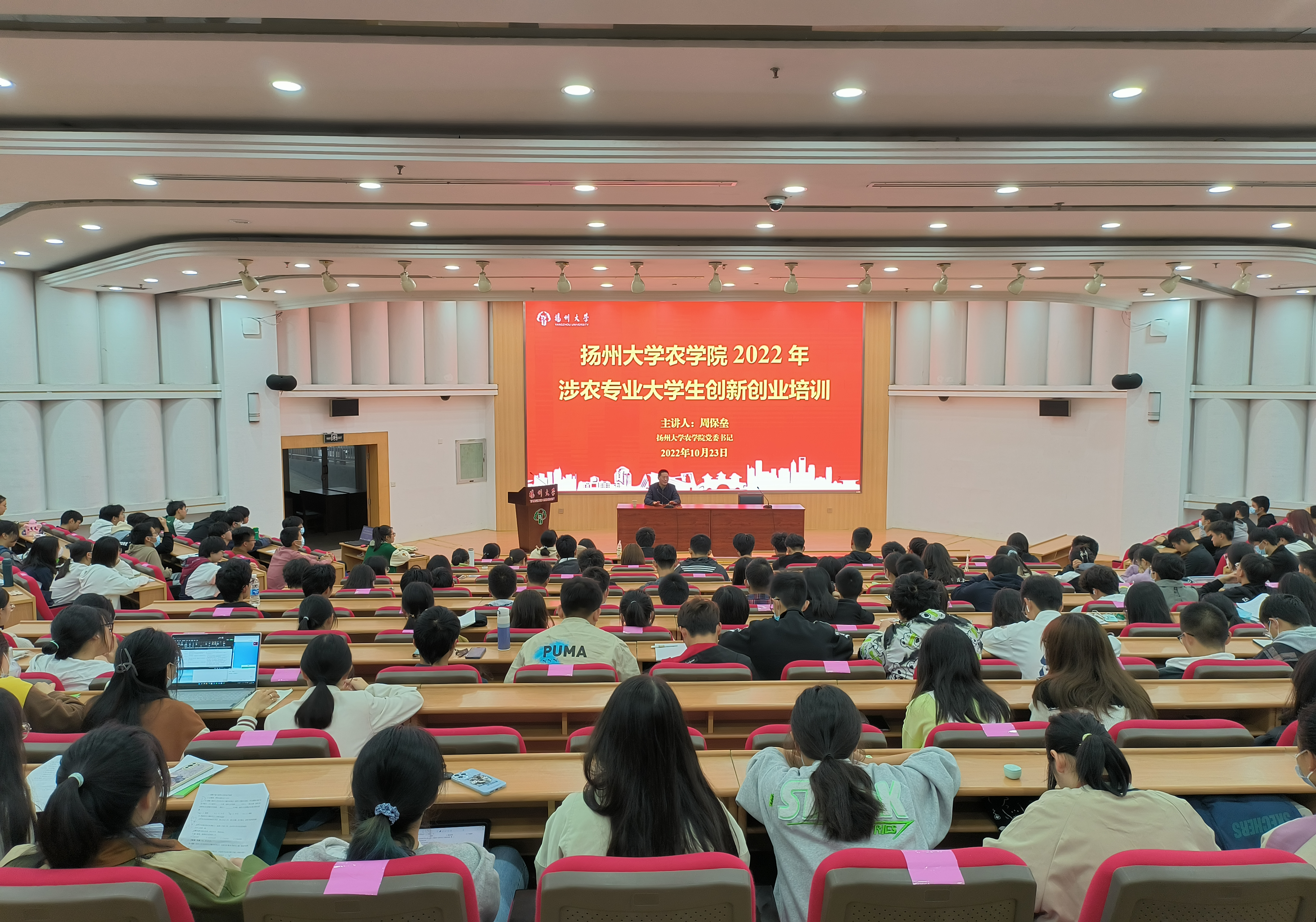 10月23日上午,农学院2022级新生《专业导论》课程讲座,在荷花池校区逸夫报告厅举行,院党委周保垒书记、农村发展与信息技术系主任孙成明教授作课程报告,2022级全体新生参加了本次讲座。