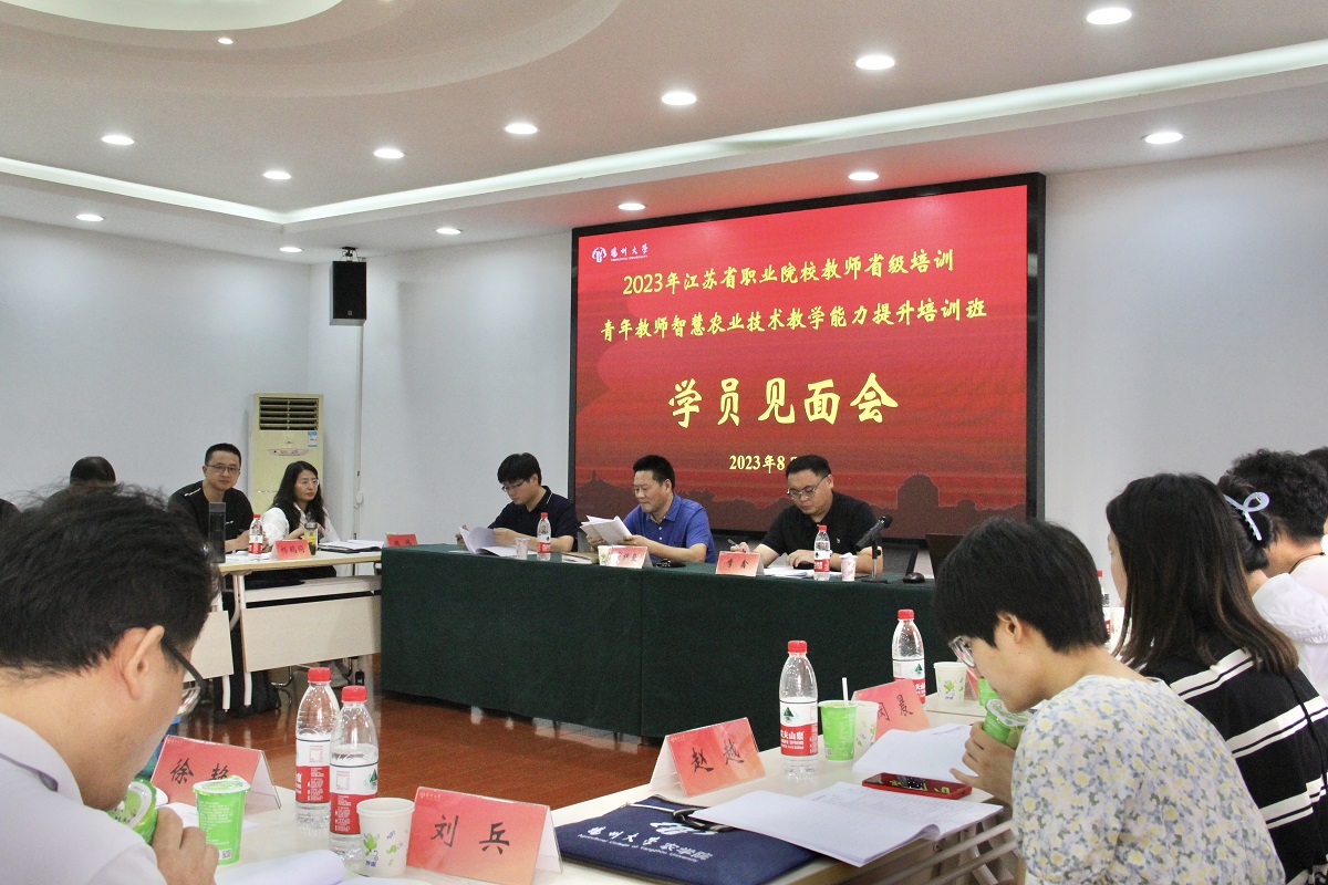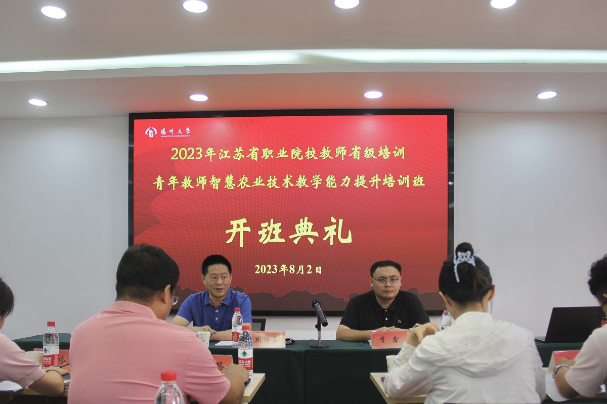 8月2日下午,由扬州大学农学院具体负责实施的2023年江苏省高等职业院校青年教师教学能力提升培训(智慧农业技术)培训项目(编号2023GZSP20)开班典礼暨学员见面会,在扬州大学文汇路校区田园宾馆二楼会议室顺利举行。农学院党委书记周保垒出席开班典礼。开班典礼由院综合办公室秘书李鑫主持。