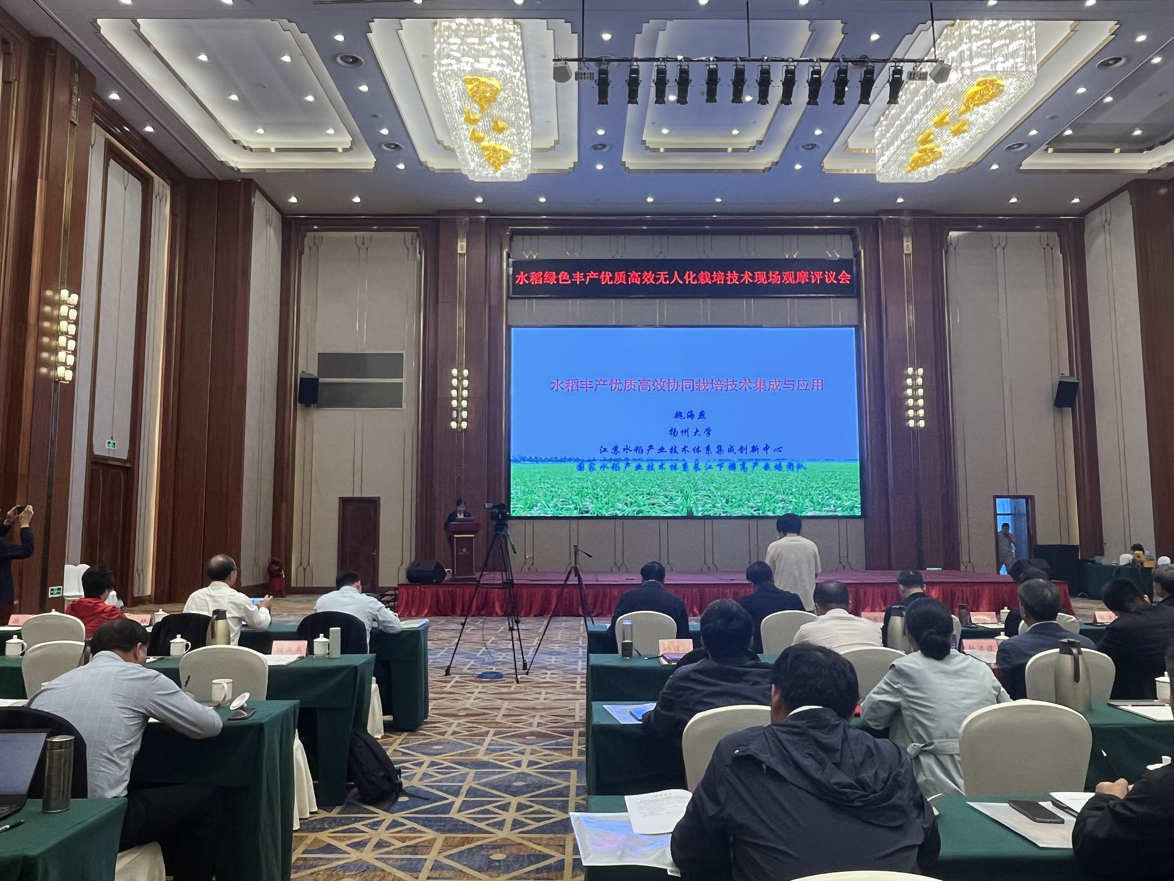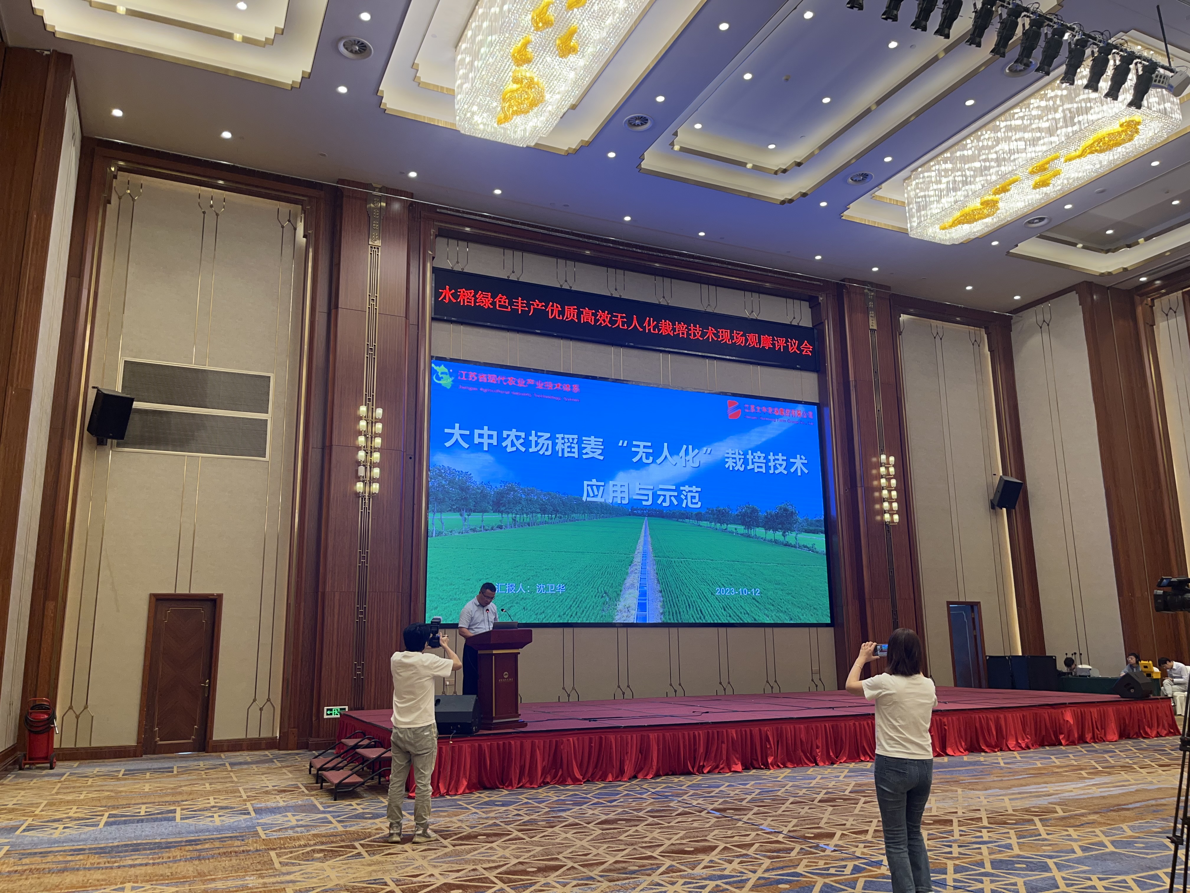 2023年10月12日,由我校、农业农村部科教司、全国农业技术推广服务中心、江苏省农业机械技术推广站、江苏省农业技术推广总站等单位主办,泗洪县农业农村局和水稻产业工程技术研究院承办的水稻绿色丰产优质高效无人化栽培技术现场观摩评议会在泗洪县召开。中国工程院院士、北京市农林科学院赵春江研究员,中国工程院院士、西北农林科技大学康振生教授,中国工程院院士、湖南省农业科学院党委书记柏连阳研究员,农业农村部科教司推广处孙廉平副研究员,全国农业技术推广服务中心冯宇鹏博士,江苏省农业农村厅沈毅一级巡视员,江苏省农业农村厅蔡恒一级巡视员,副校长蒋乃华教授,南京农业大学副校长丁艳锋教授,南京农业大学副校长朱艳教授等出席会议。江苏省有关农业管理部门、农技推广机构、科研院校、江苏水稻产业技术体系岗位专家和推广示范基地负责人等150多名代表参加活动。