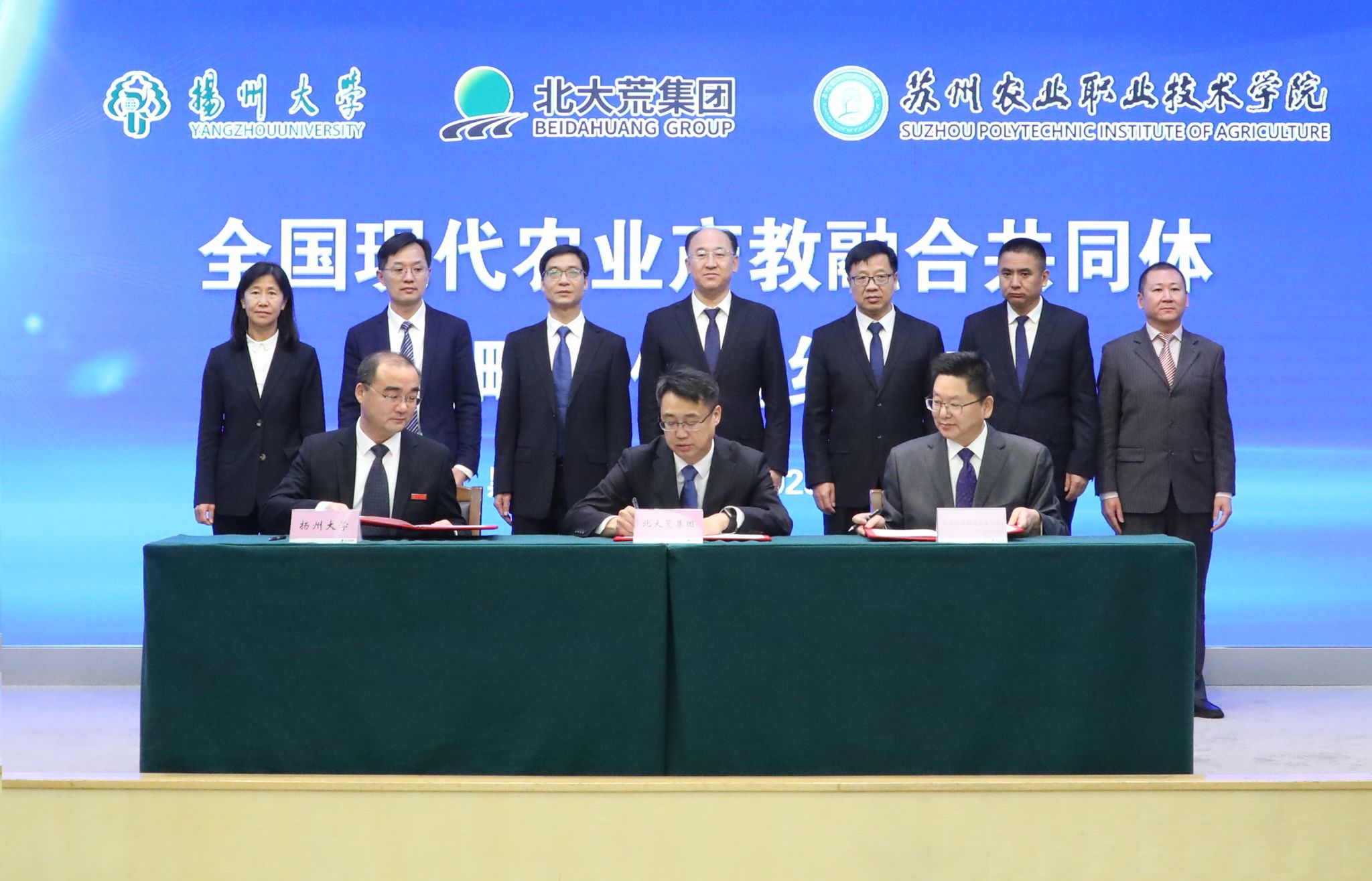 10月16日,我院与北大荒集团、苏州农业职业技术学院联合举行在北大荒集团总部举办“全国现代农业产教融合共同体”战略合作签约仪式。北大荒农垦集团党委副书记、副董事长杨宝龙,苏州农业职业技术学院党委副书记、校长苏士利出席仪式,我院院长杨泽峰出席仪式并签约。