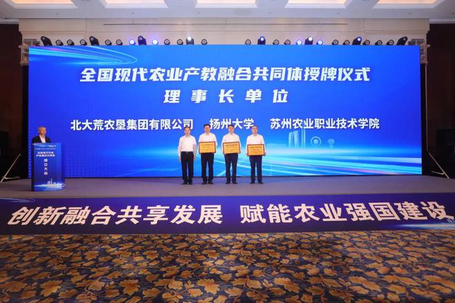 共同体在农业农村部指导下,由北大荒农垦集团有限公司、扬州大学、苏州农业职业技术学院牵头,联合东北农业大学、江苏省农垦集团有限公司、江苏省农业产业化龙头企业协会等行业科研机构、龙头企业、院校、行业协会及上下游企业等350余家单位共同建设,跨区域汇聚优质产业资源、高水平大学的科技与人才优势、职业院校高技能人才培养特色,有效完成技术创新与制度创新、技术供给与需求供给、中介机构与教学机构三个"双轮驱动",促进现代农业产业与教育融合发展,构建产学研用一体化的协同创新体系,推动农业现代化与科技创新的深度融合。