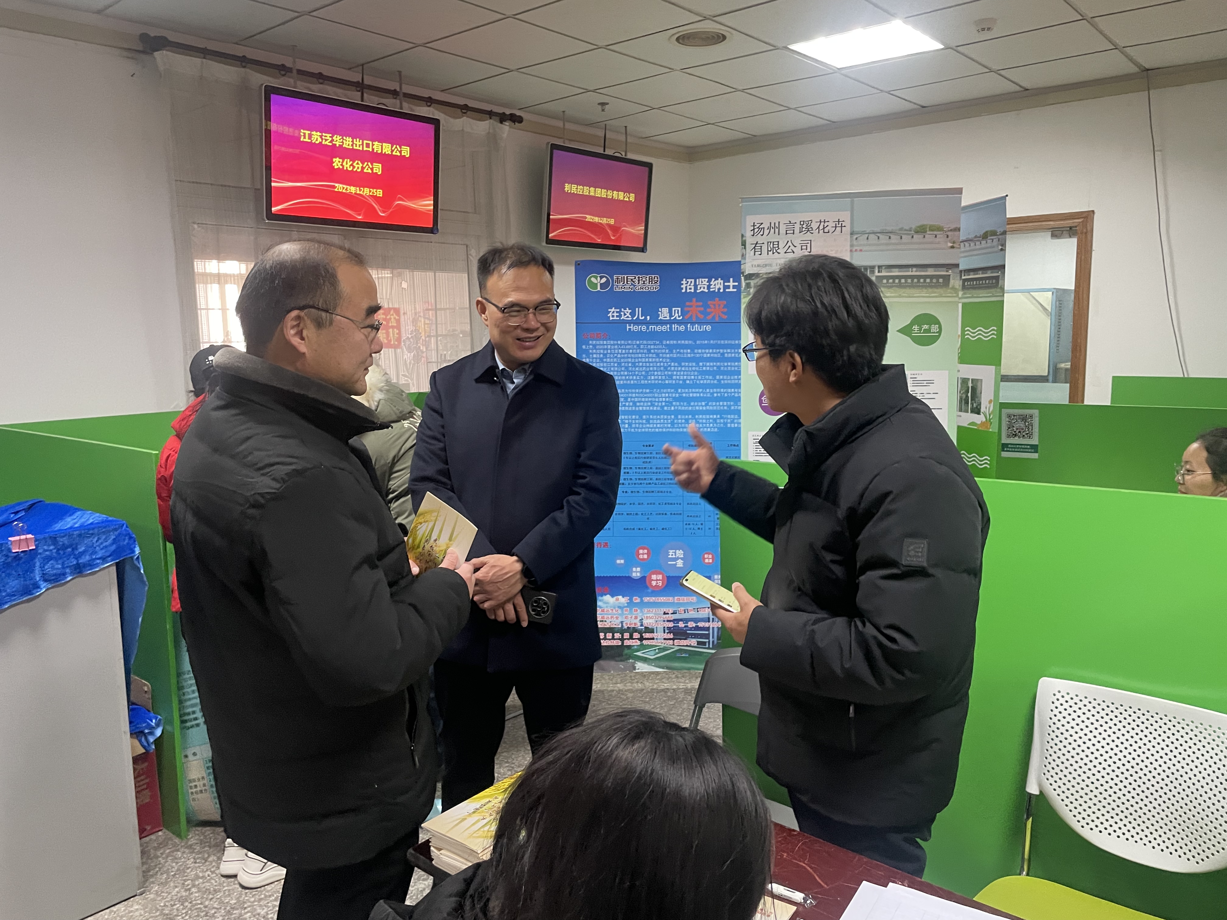 12月25日,扬州大学农学院、植物保护学院、园艺园林学院2024届毕业生“植物生产类”专场招聘会在扬州大学荷花池校区大学生活动中心成功举办。本次招聘会共吸引到省内外33家涉农企业参会,重点围绕农科专业提供就业岗位530余个,旨在促进农科毕业生高质量就业。招聘会分企业宣讲和双选会两个阶段进行,近800名本硕博农科应届毕业生前往应聘、投递简历。我院党委书记李卫星、院长杨泽峰、党委副书记周立云、植物保护学院院领导、园艺学院院领导,以及毕业班班主任老师来到招聘会现场与用人单位交流,指导与推荐学生应聘。