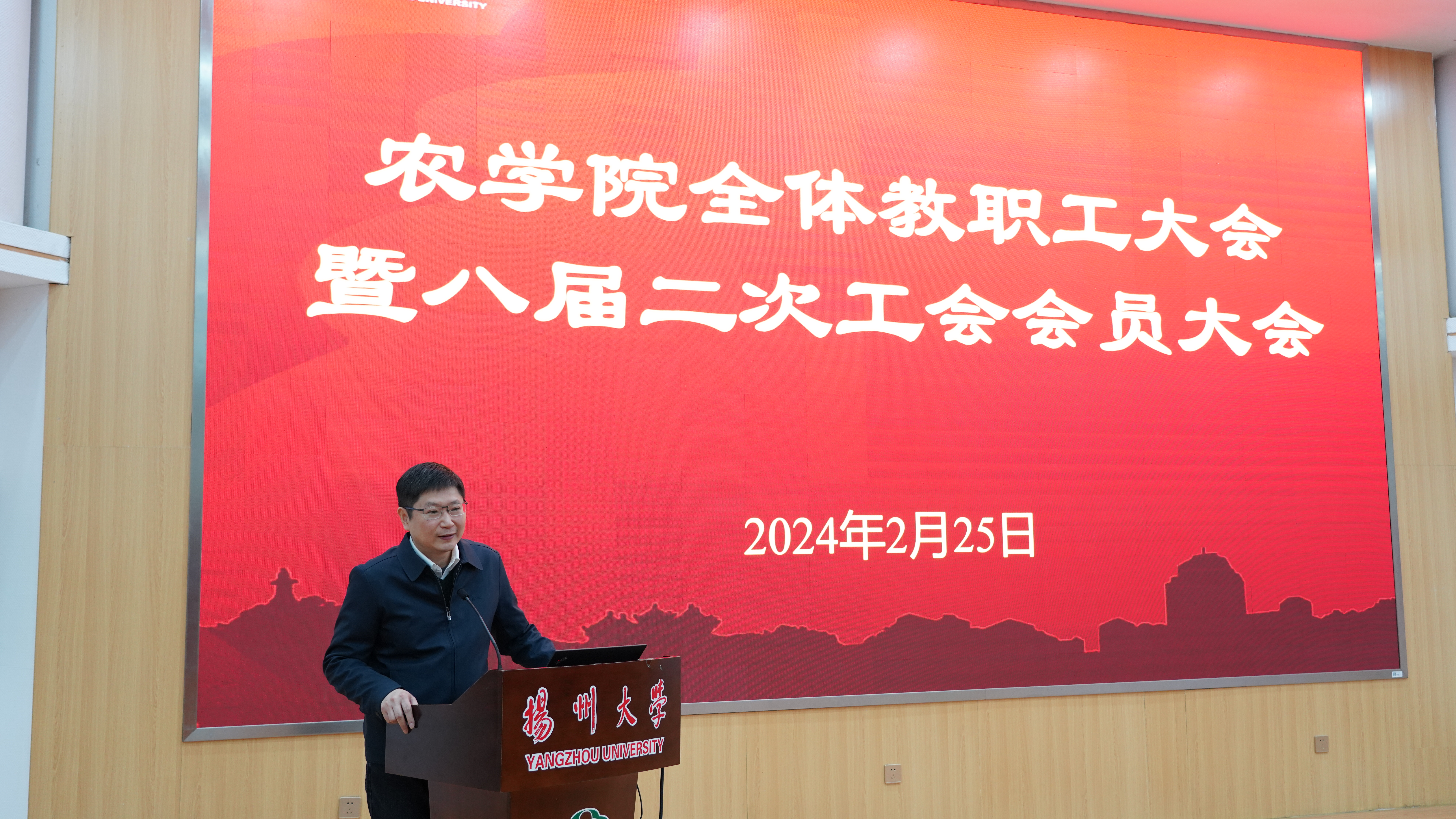 2月25日下午,我院在荷花池校区逸夫报告厅召开了新学期教职工大会。校纪委书记、派驻监察专员邱庆峰,院领导班子成员和全体教职工参会。会议由院长杨泽峰主持。