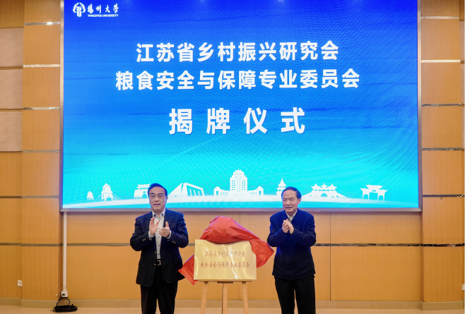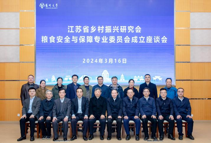 3月16日,江苏省乡村振兴研究会粮食安全与保障专业委员会揭牌仪式暨成立座谈会在荷花池校区举行。省乡村振兴研究会会长、省十二届政协副主席王荣平,我校党委书记焦新安,中国工程院院士、我院教授张洪程出席会议并致辞。王荣平和焦新安共同为江苏省乡村振兴研究会粮食安全与保障专业委员会揭牌。校党委常委,副校长赵文明主持会议。