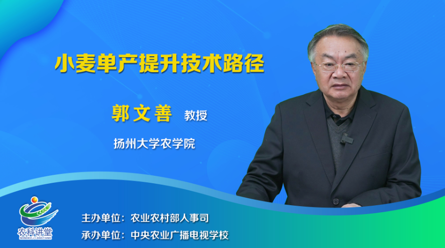 4月25日上午,由农业农村部人事司主办、中央农业广播电视学校承办的《农科讲堂》栏目邀请我院郭文善教授在全国农业农村远程教育平台为全国各级农业科技人员作题为《小麦单产提升技术路径》的报告。