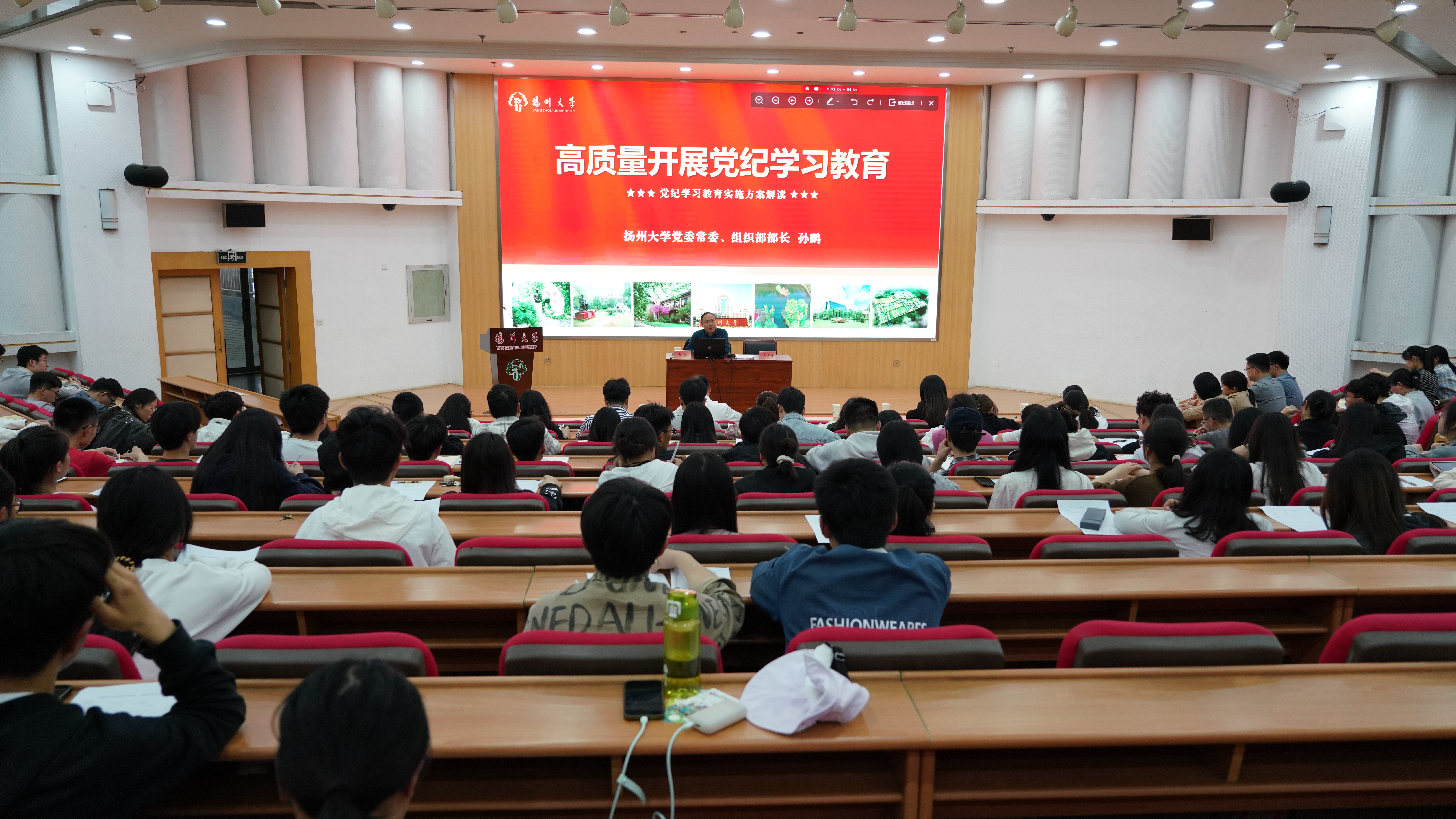 4月24日,农学院开展党员干部党纪学习教育专题会。校党委常委、组织部部长孙鹏应邀作专题辅导。学院党委书记李卫星主持会议。农学院基层党支部书记、支委、院分党校第38期发展对象和师生党员代表等200多人参会。