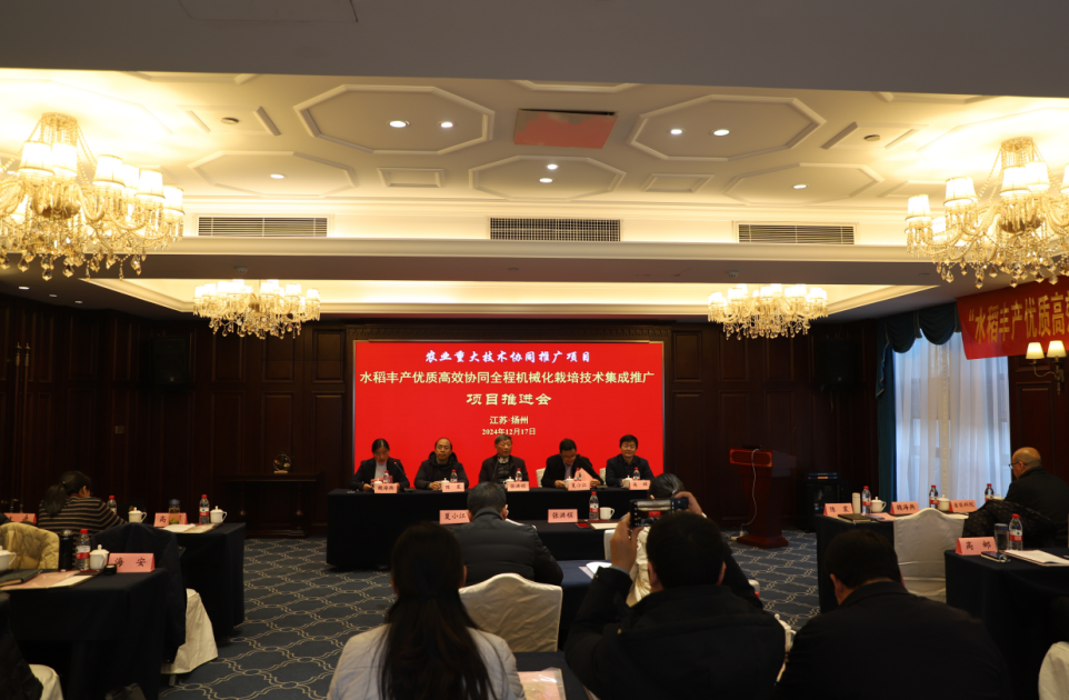 2024年12月17日,我院举办全国农业重大技术协同推广计划“水稻丰产优质高效协同全程机械化栽培技术集成推广”项目推进会。中国工程院院士、我院教授张洪程,江苏省农业农村厅科教处副处长夏小江,江苏省农技推广总站副站长陈震,水稻产业工程技术研究院院长高辉等参加会议。我院副院长魏海燕主持会议。