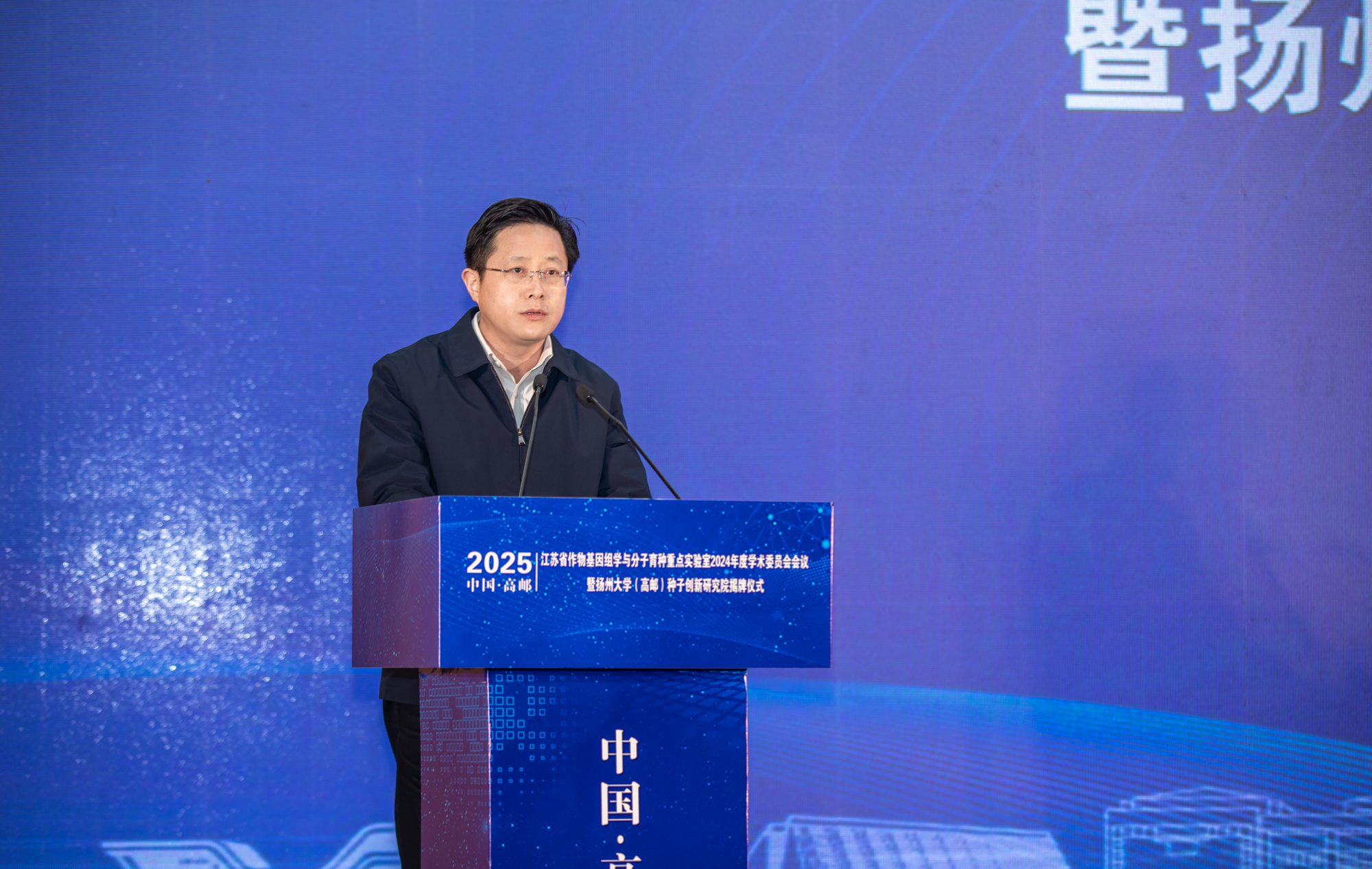 刘巧泉在致辞中介绍了扬州大学事业发展概况,回顾了我校农学学科建设取得的成效。他表示,生物育种作为现代农业的核心驱动力,对保障粮食安全、推动农业高质量发展发挥着重要作用。校地共建种子创新研究院是推动种业振兴的重要举措,希望双方强化创新引领,汇聚人才力量,深化校地融合,通过政产学研用有机结合,助力扬州乃至全省农业产业提质增效,乡村宜居宜业,农民富裕富足,谱写校地全面合作高质量发展新篇章。