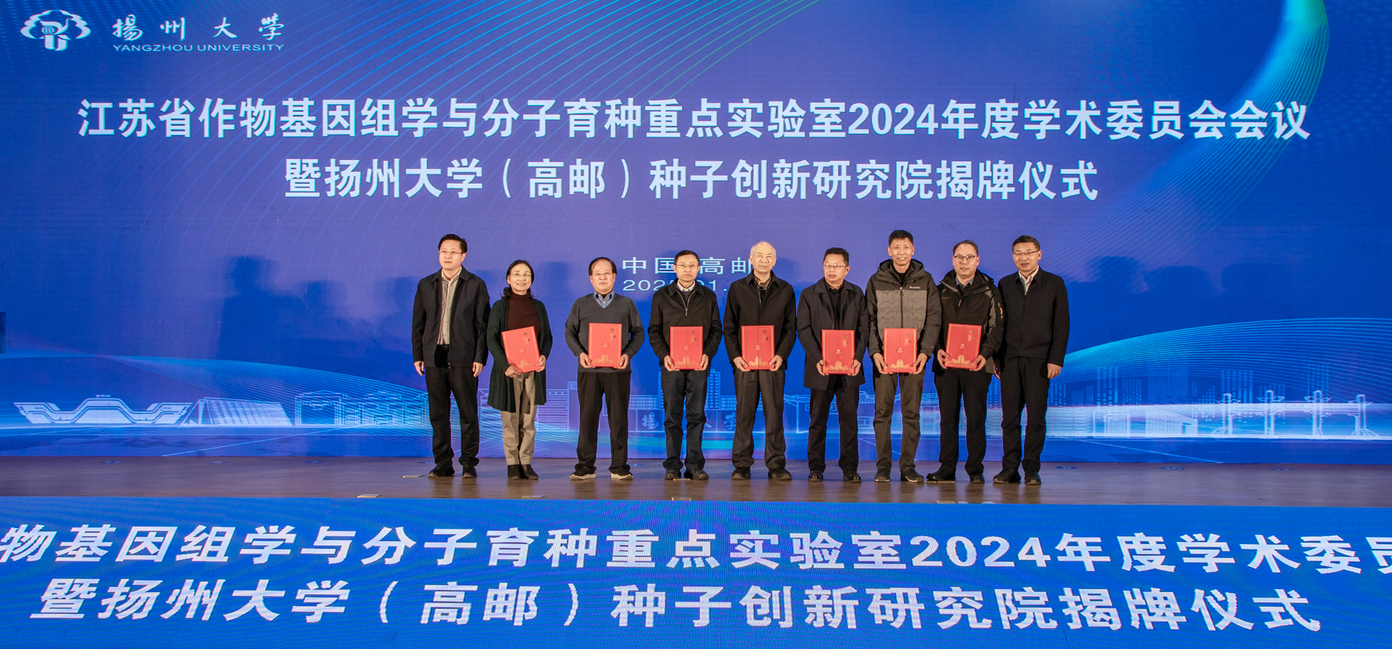 1月18日,学院举办江苏省作物基因组学和分子育种重点实验室2024年度学术委员会会议暨扬州大学(高邮)种子创新研究院揭牌仪式,我校校长刘巧泉出席活动并致辞,副校长赵文明主持揭牌仪式。