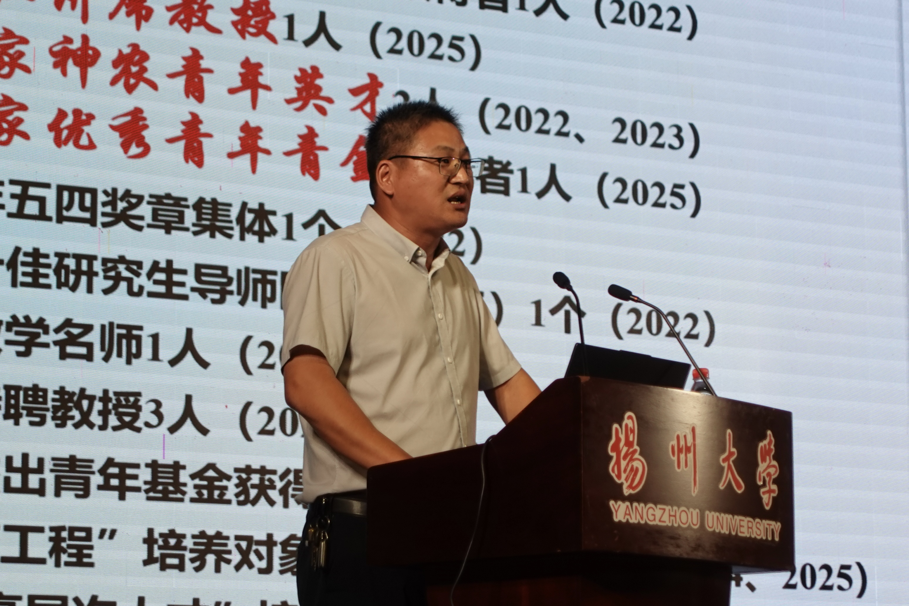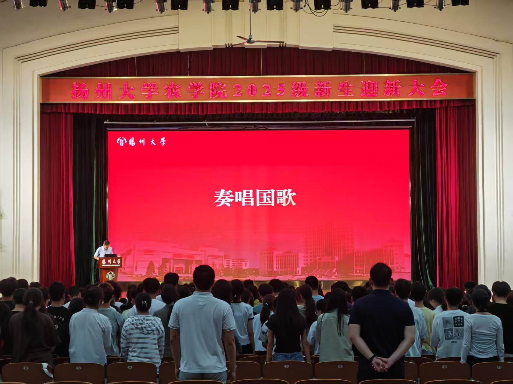 迎新大会在雄壮的国歌声中拉开帷幕,全体师生肃立齐唱,昂扬的旋律激荡着新农科人强农兴农的初心。会上,施林峰书记代表学院向全体25级新生表示热烈欢迎。他寄语新生要深入体悟扬大农科的123年办学史,在学院的文化积淀中,强化使命担当、找到前行方向;要准确把握大学学习的规律特点,在扬大的综合优势中,强化通识基础、发展专业能力;要清晰知晓日常管理的底线红线,在严格遵章守纪中,强化个人自律、提升全面素质。