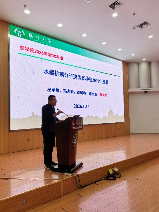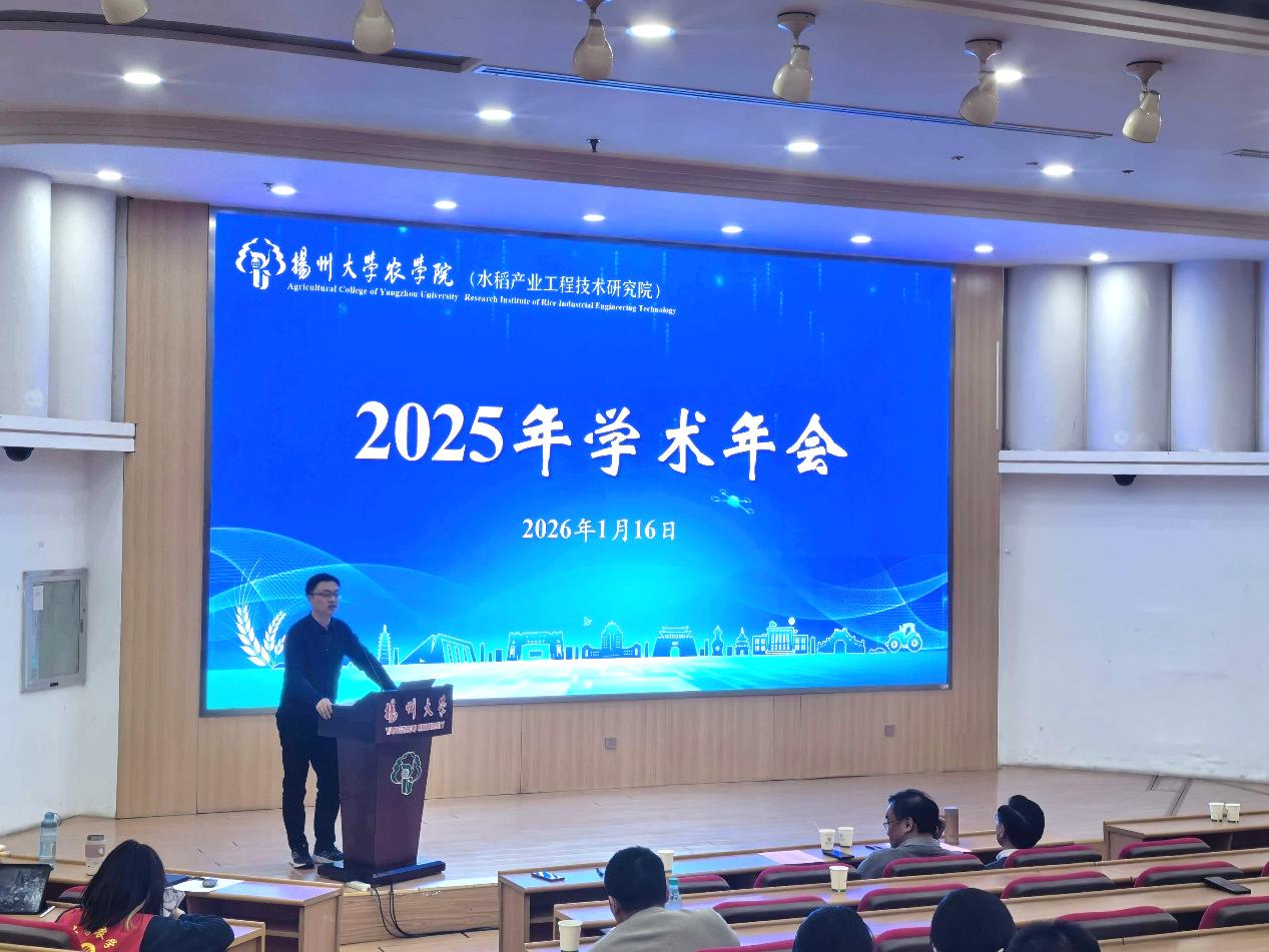1月16日,我院2025年学术年会在荷花池校区逸夫馆报告厅隆重举行。院党委书记施林峰、院长陆大雷、水稻产业工程技术研究院院长高辉等院领导及学院师生300余人齐聚一堂,共襄学术盛宴、共话发展蓝图。会议由副院长李钱峰主持。