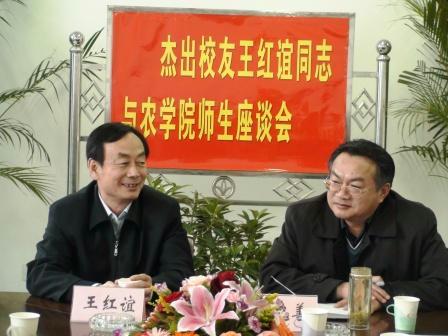 座谈会上,王红谊校友还热情回答了与会大学生有关“考研、就业、创业、村官”等热点问题。与会师生被其高尚的人格魅力、大家风范和聪明睿智所深深折服。