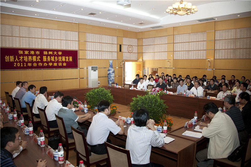 我院成功举办“扬州大学 张家港市 创新人才培养模式,服务城乡统筹发展 2011年合作办学座谈会” 为进一步推进创新人才培养模式的形成和发展,实施人才强市战略,统筹城乡发展,促进张家港班同学的成长,9月23日,张家港市委常委周伟携市相关部门及各乡镇主要领导共19人来扬看望张家港班学子并举行“张家港市 扬州大学 创新人才培养模式 服务城乡统筹发展 2011年合作办学座谈会”。我校副校长周新国、教务处处长梁建生、校学工处副处长赵晓兰、我院党委书记余吉生、院长郭文善、副院长陆建飞、党委副书记生永明等领导出席了此次活动。此外,2010和2011级张家港班61名学生悉数参加。座谈会在扬州大学荷花池校区主楼多功能厅举办,会议由郭文善院长主持。