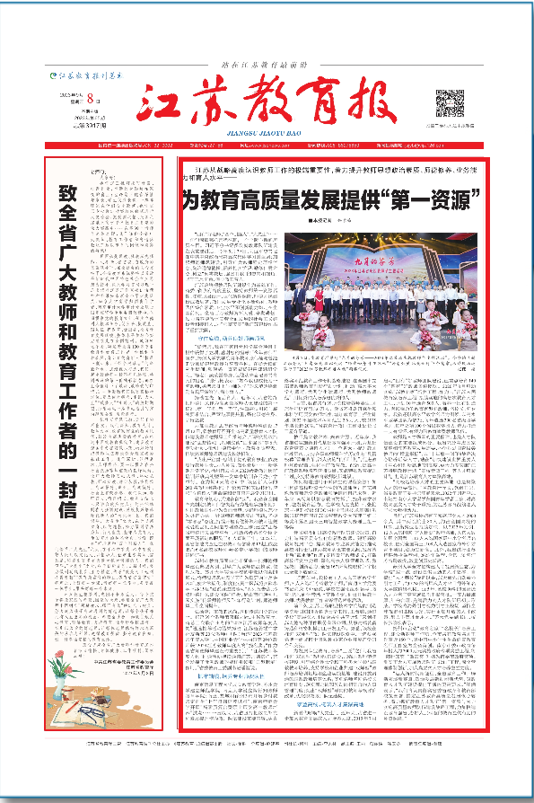 “迈入新时代新征程,全省教育工作开辟新领域新赛道、塑造发展新动能新优势,对教育人才队伍建设提出了新的更高要求。”江涌表示,“我们将认真落实省委省政府和教育部决策部署,锚定江苏教育高质量发展核心要务,着力抓好教育人才队伍‘第一资源’,大力实施高质量教师队伍建设战略工程,为加快建设教育强省、办好人民满意的教育提供有力的师资保障。”