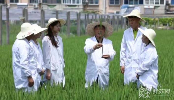 “这个群体属于长穗期生长不足,没有及时补施穗肥,搁田过重......”上午8:30分,36摄氏度高温,在扬州大学水稻试验田,张洪程给学生在田间指导。