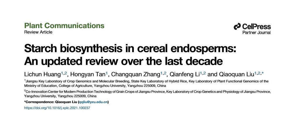 我院刘巧泉教授团队发表禾谷类作物胚乳淀粉合成与调控综述文章,研究成果发表在Nat Commun/Mol Plant/PBJ等期刊