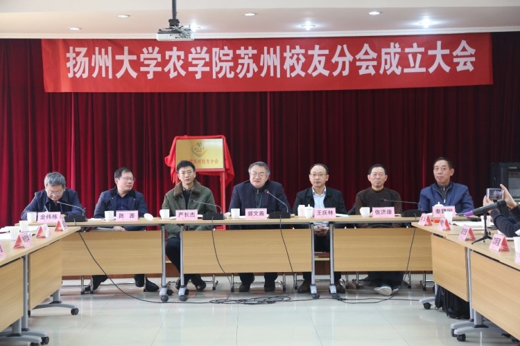 1月26日,扬州大学农学院苏州校友分会成立大会在苏州市农村干部学院举行。扬州大学校友会秘书长王庆林、我院党委书记郭文善、院长严长杰、副院长陈源、扬州大学校友会苏州分会会长张济康、秘书长俞华出席成立大会。会议由苏州市农村干部学院副院长金伟栋主持。来自苏州各界的60余名校友代表参加会议。