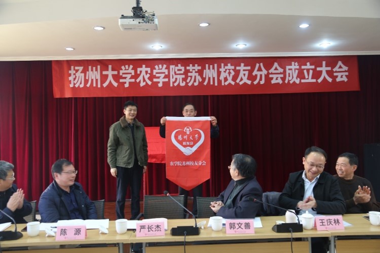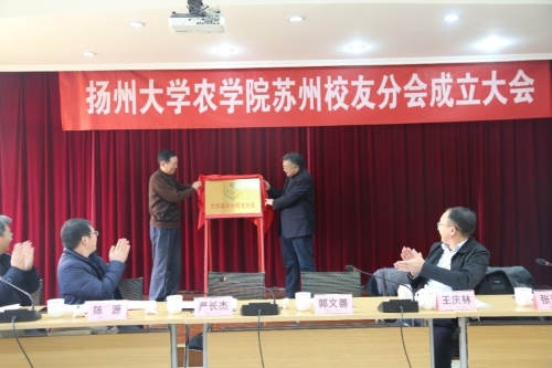 院党委书记郭文善和院长严长杰为农学院苏州校友分会进行了授旗与揭牌。