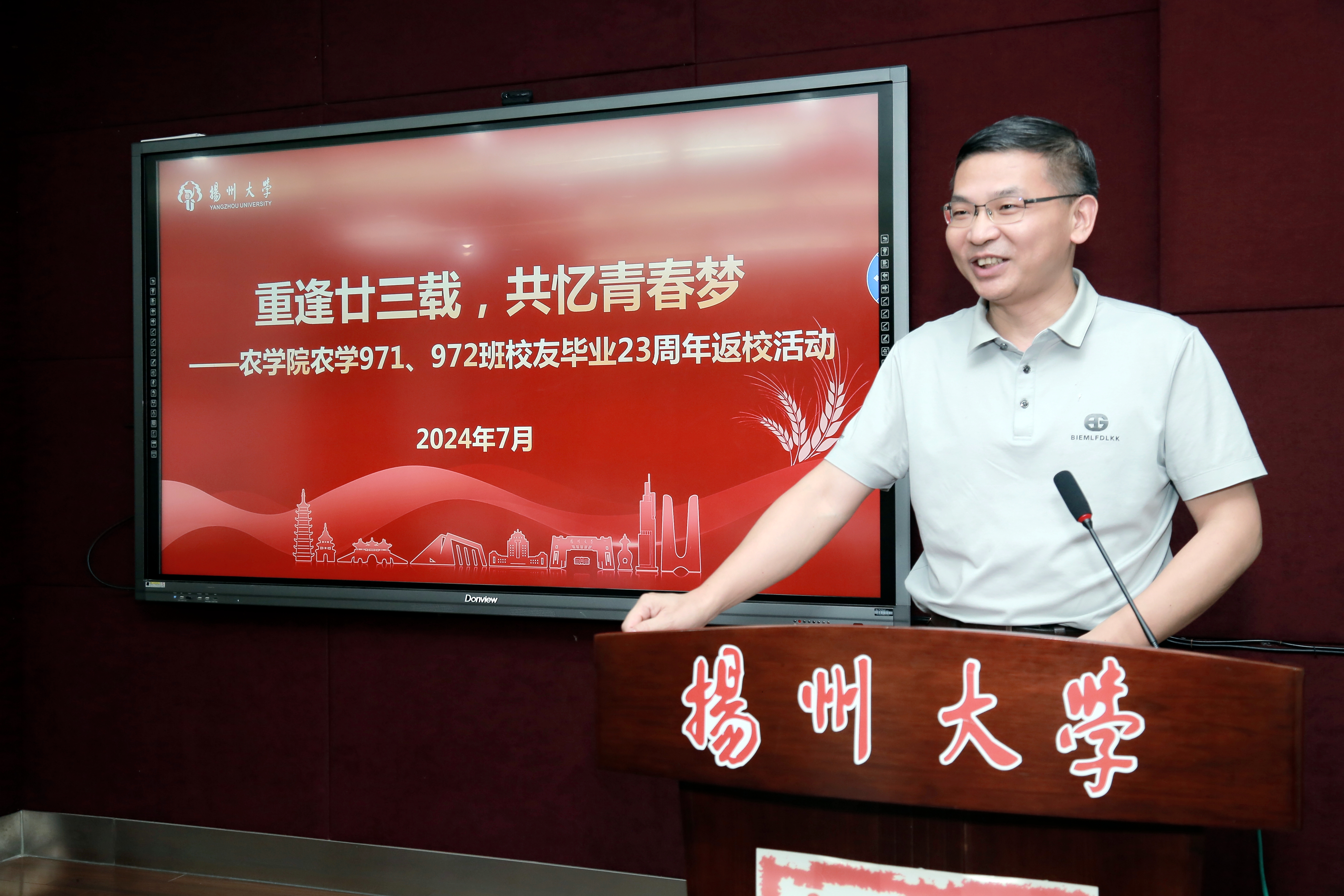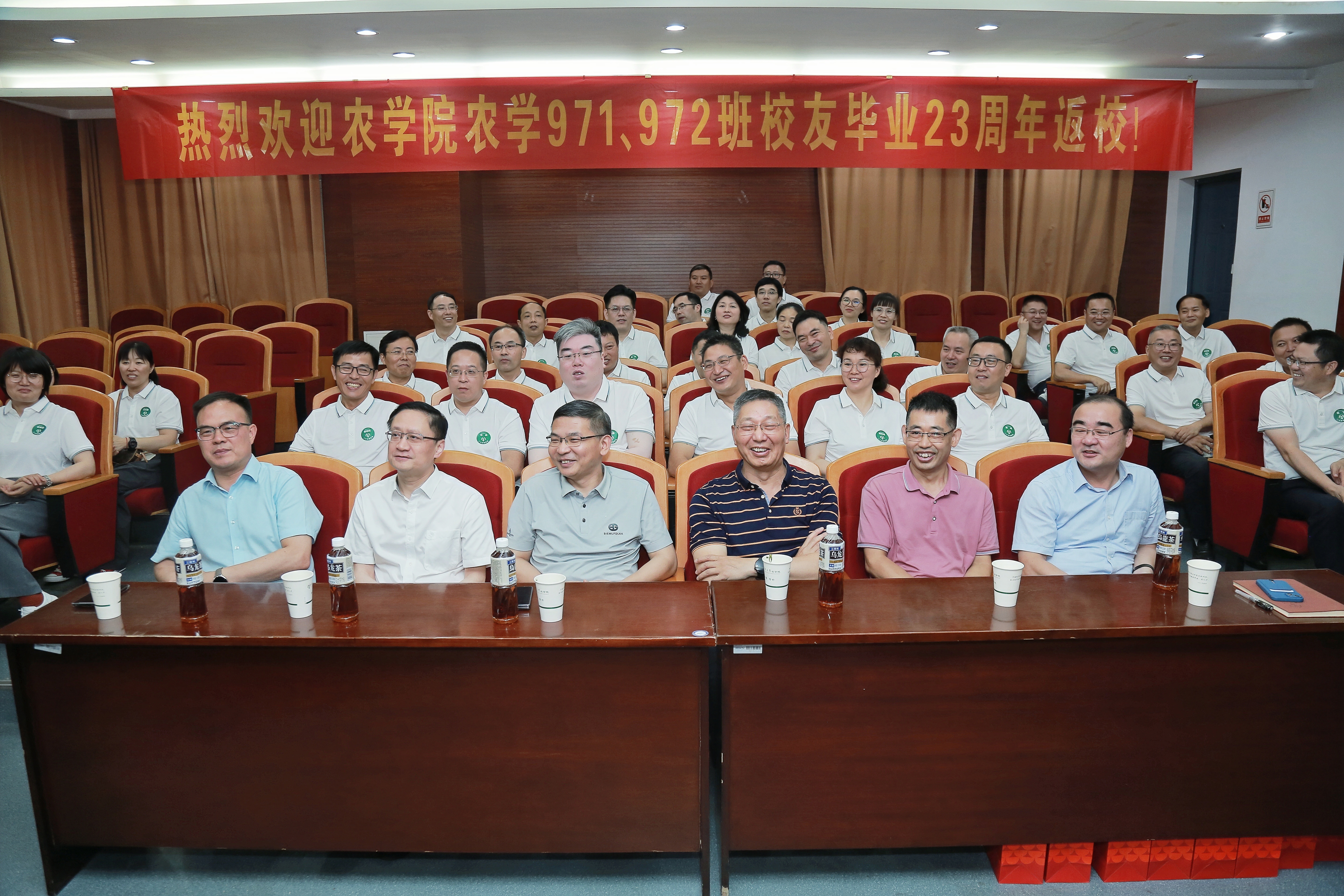 7月13日,农学971、972班校友返回母校举行毕业23周年聚会活动。校党委常委、副校长刘巧泉,对外联络办公室主任陈克勤,学院党委书记李卫星、院长杨泽峰、党委副书记周立云、副院长陆大雷、副院长魏海燕参加活动。时任农学971班班主任、原信息工程学院党委书记余吉生,时任农学972班班主任、生物科学与技术学院副教授王泽港等应邀参加座谈交流。农学971班校友、校离退休处副处长、校关工委副秘书长夏玉荣主持活动。