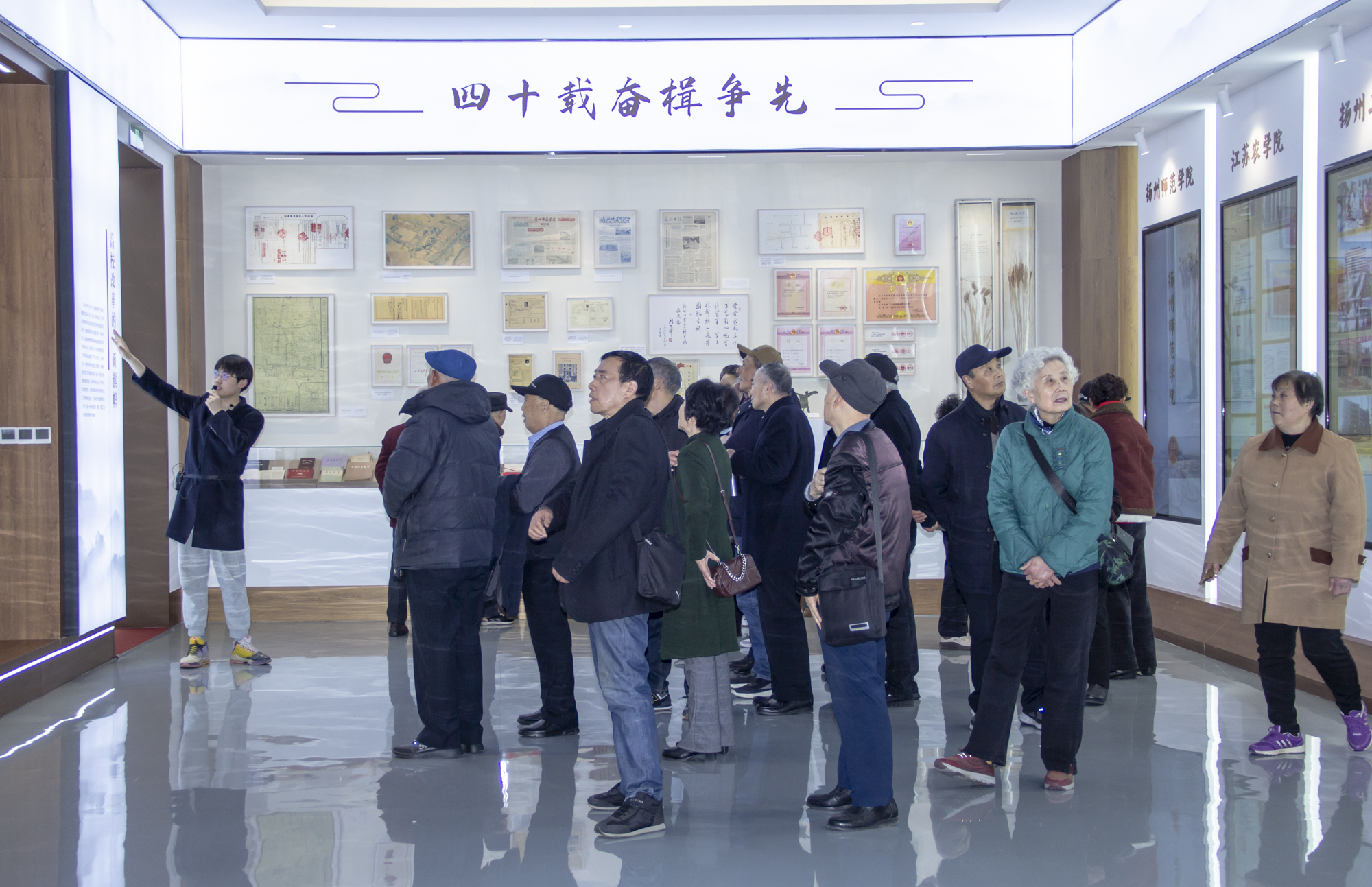 72级校友还集体参观扬州大学校史馆,回顾学校发展历程,了解学科建设成果。通过志愿者的讲解与馆中一张张珍贵的历史照片,校友们重温母校建设发展的光辉历程,聆听母校坚定前行的足音,也回忆起了自己当年的求学时光。参观过程中,校友间交流频繁,多位校友驻足于老照片前诉说往事。