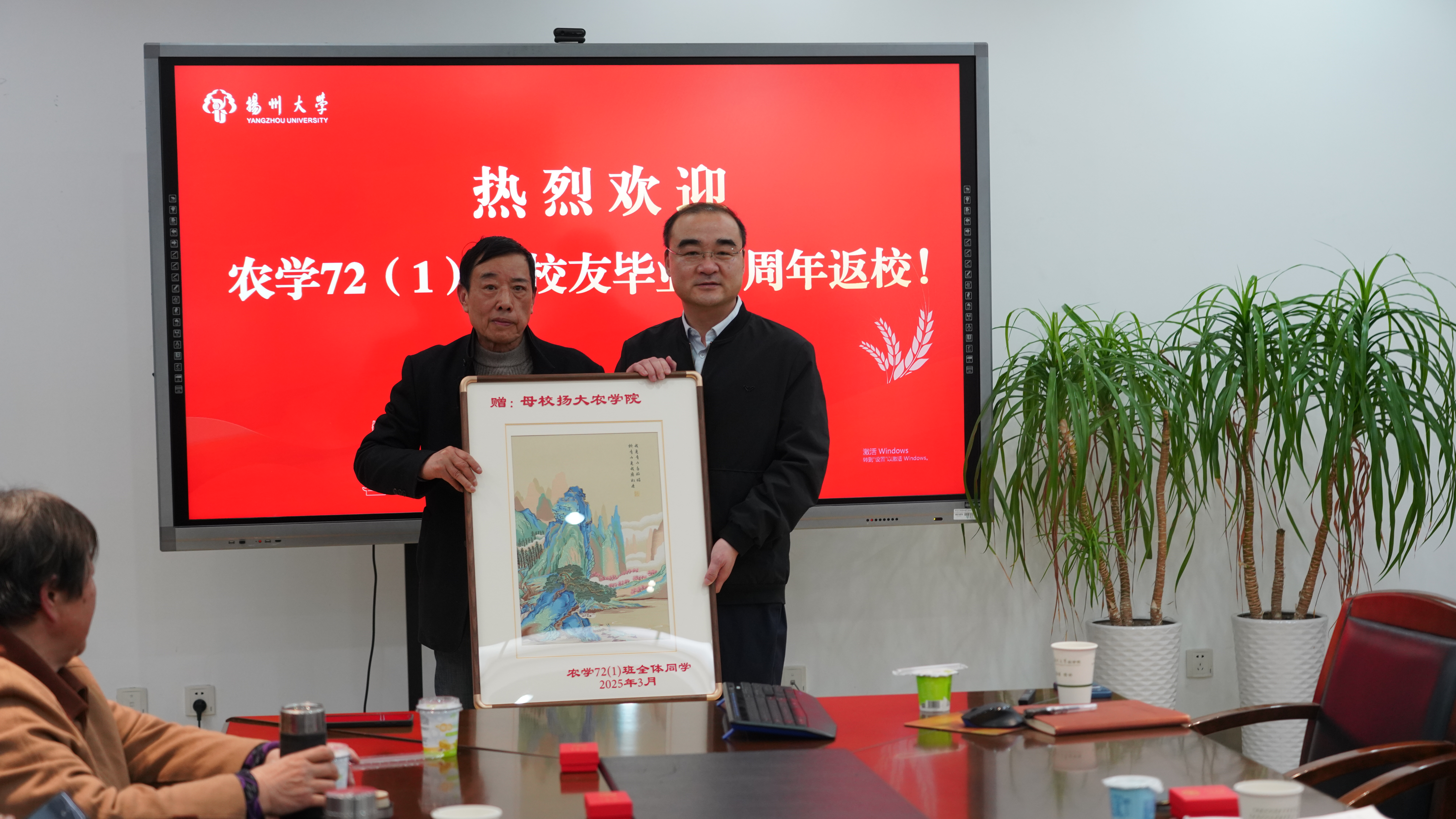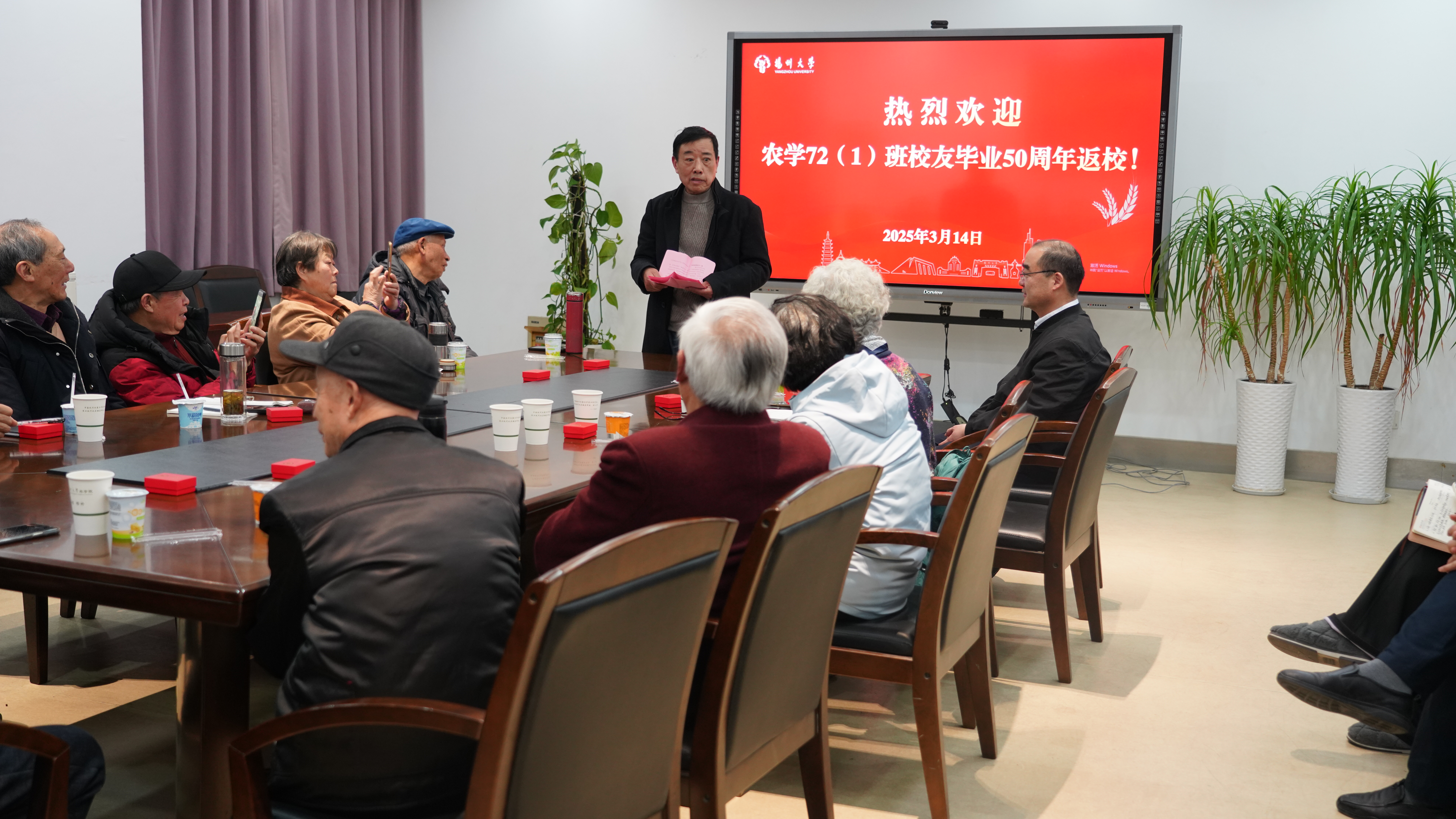 3月14日,农学院72级(1)班校友返回母校举行毕业50周年聚会活动。我院院长杨泽峰、党委副书记周立云、副院长陆大雷、副院长魏海燕出席活动。