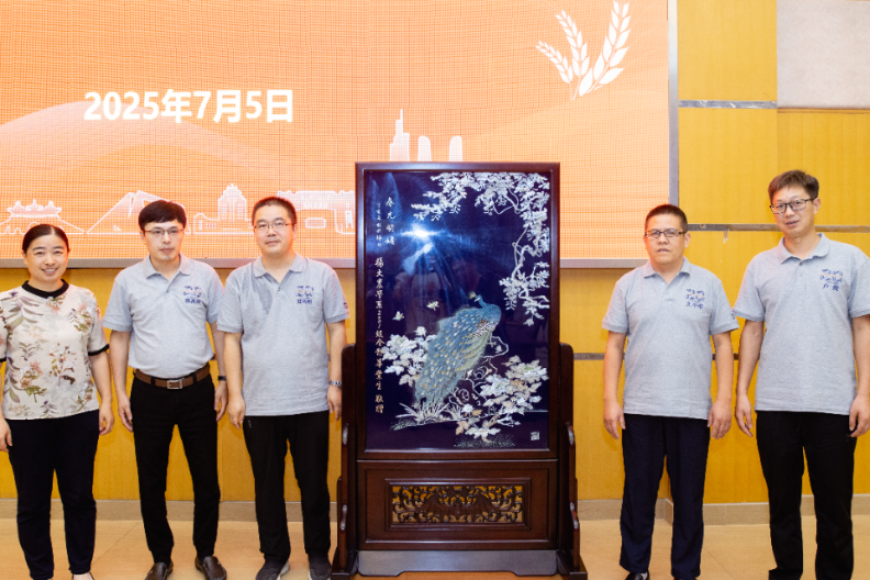 虽然身处五湖四海,大家依然牵挂母校,各班班长代表2001级毕业生为母院赠送扬州漆器髹饰技艺非遗作品漆器平磨螺钿地屏风《春光明媚》,副院长魏海燕代表母院接受捐赠。