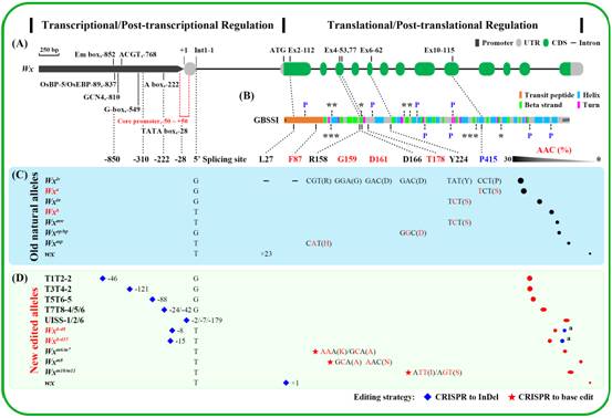 图2 “老”Wx基因自然变异和““新”编辑产生的Wx等位基因