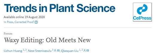 8月17日,我室刘巧泉教授团队联合国际水稻研究所Nese Sreenivasulu博士在植物学领域国际著名期刊《Trends in Plant Science》(IF=14.416, IF5year=15.727)在线发表题为“Waxy Editing: Old Meets New”的评述性论文,总结和评述了淀粉类作物中蜡质基因(Waxy, Wx)相关的研究进展。提出使用双管齐下的方法,通过结合“老”自然等位变异和“新”基因编辑技术,精确调控Wx基因和直链淀粉含量,以培育优质和健康的创新谷物。