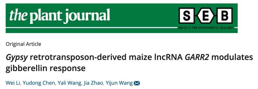 4月4日,Plant Journal在线发表了扬州大学农学院题为Gypsy retrotransposon-derived maize lncRNA GARR2 modulates gibberellin response的研究论文,论文解析了调控赤霉素响应的玉米长链非编码RNA (long noncoding RNA, lncRNA),重点研究了逆转座子来源的长链非编码RNA GRR2调控赤霉素响应的功能及机制。